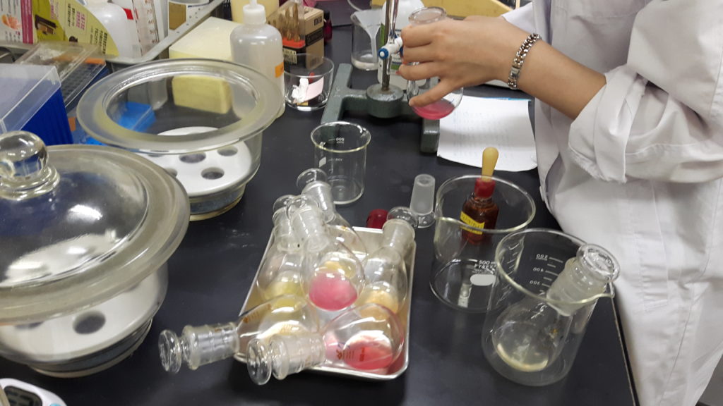 精米及び玄米の品質の一つに脂肪酸度があります。精米の場合は、脂質量は1%ですが、この脂質の劣化(遊離脂肪酸量)が古米臭とか劣化した味を出します。品質の指標として遊離脂肪酸を水酸化カリウムで中和滴定して求めていると思います。