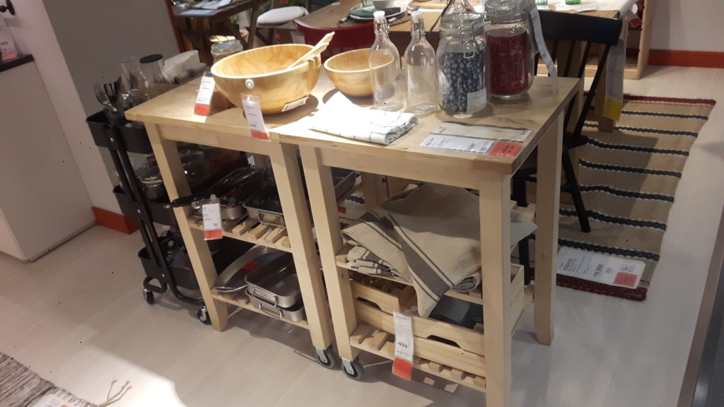 久しぶりに立川のイケアに行きましたが、価格の安さにびっくりでしたが、昔のようにデザインのよいものがなかなかなく、北欧っぽいデザインのキッチンテーブル50×58×85(H)を購入しました。