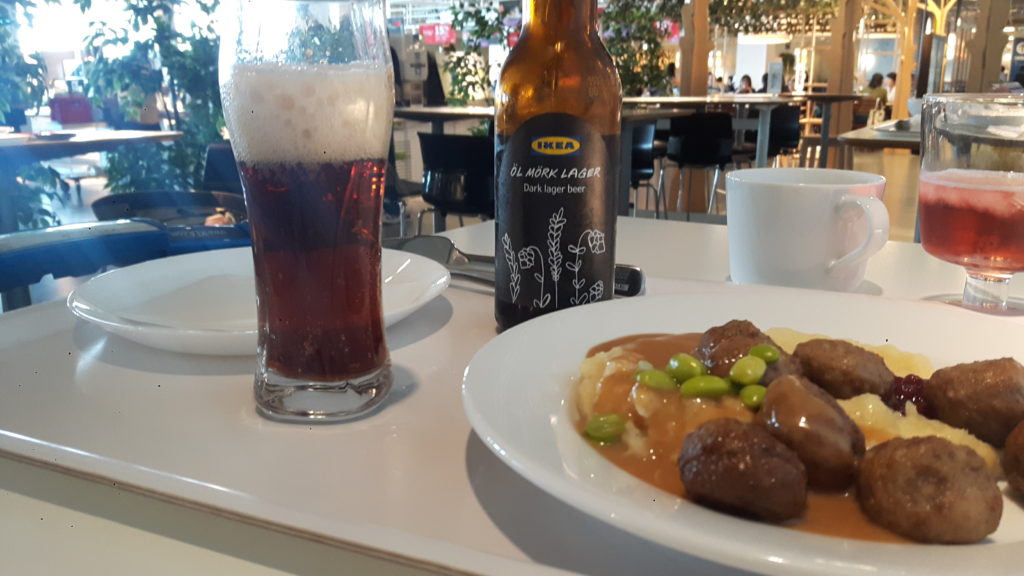 スエーデンといえばスモーガスボード(村上さんが帝国ホテルでバイキングと名付けた)が有名ですが、イケアではミートボールとサーモンでしょうか?肉団子(何の肉かわからない?)にやや硬めのマッシュポテト付。