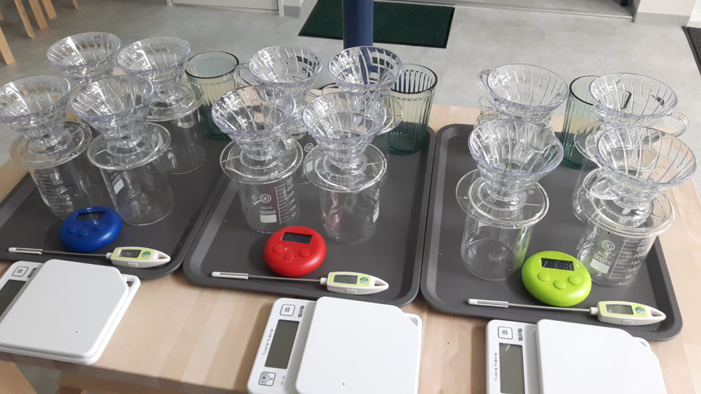 抽出は、ハリオのドリッパーで、300ccのビーカーに落とします。