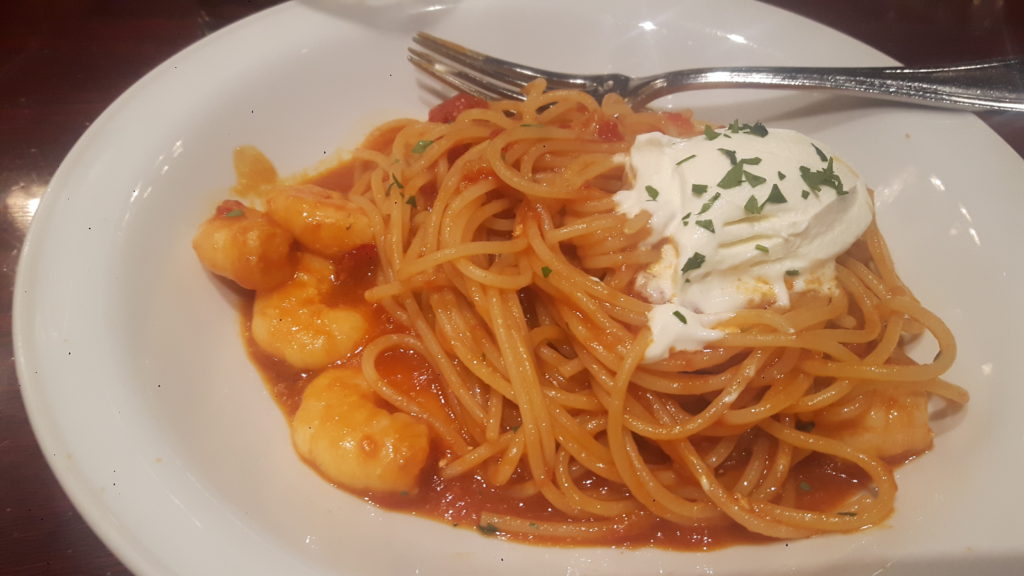 ついでにすぐそばのイタリアン系で小エビのトマトソースのスパゲッティを。
