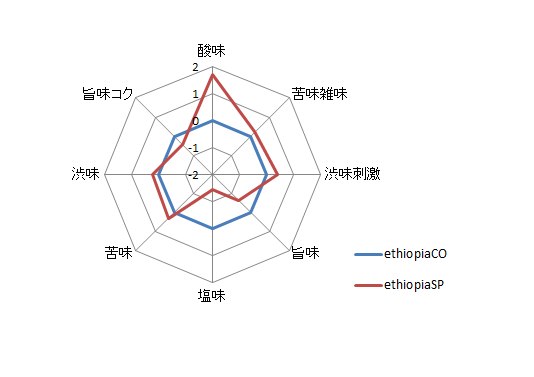 焙煎度合いも異なりますので、グラフ(8角形のレーダーチャート)は大きく異なります。