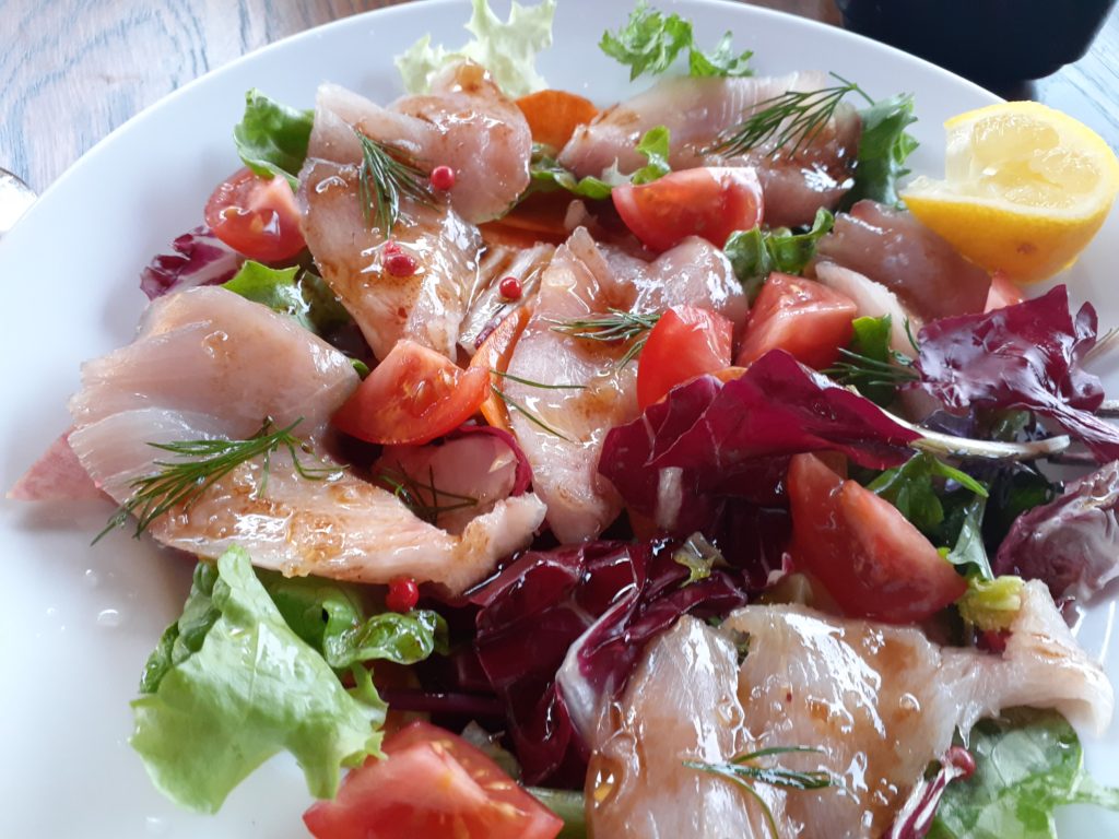 帰りは 1階のカフェ・HELLO(2階が教室)で軽い食事。