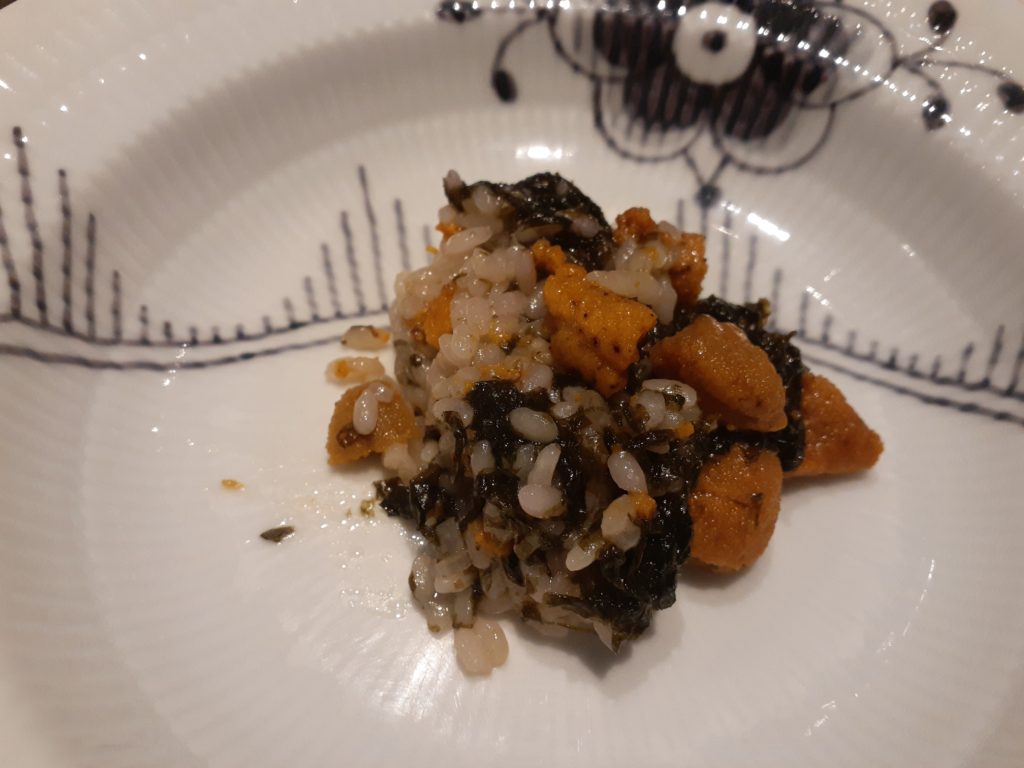海苔とウニのリゾットはアルデンテでおいしくいただきました。