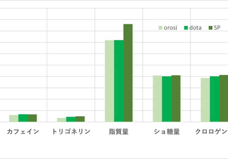 しかし、カフェイン、トリゴネリン、ショ糖量、クロロゲン酸については大きな差はみられません。