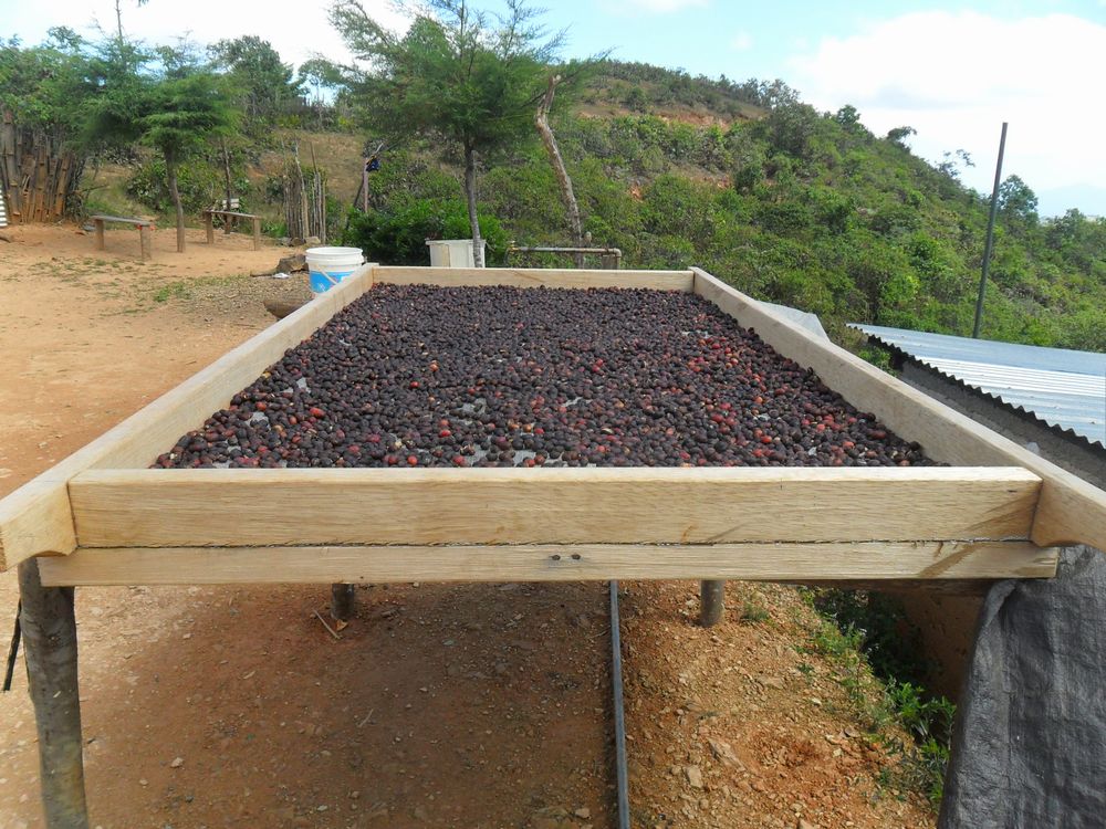 写真左はアフリカンベッドで乾燥、ナチュラルの実験もしています。