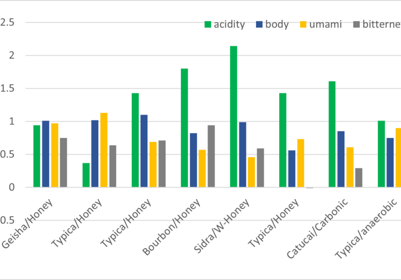 | Typica honey | 4.8 | 1.500 | 87.71 | 42 | 36.2 | フレグランス、ソフト、甘味 |