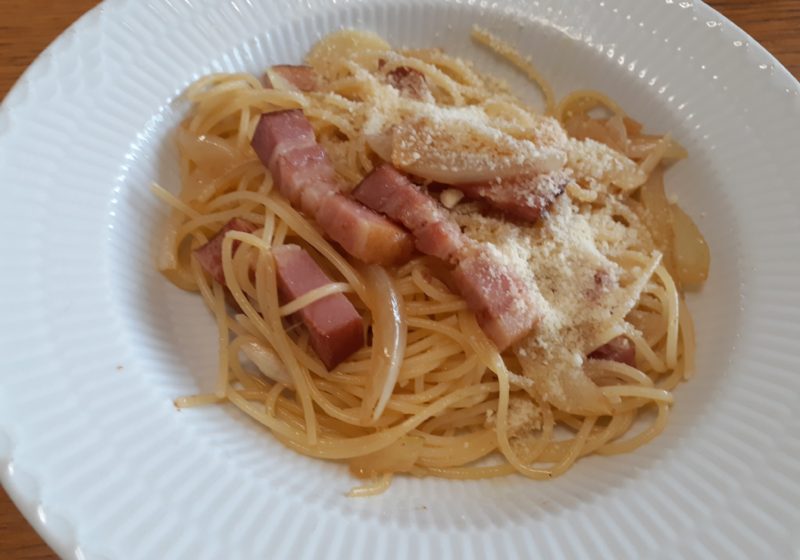 新玉ねぎとベーコンのスパゲティは単純です、