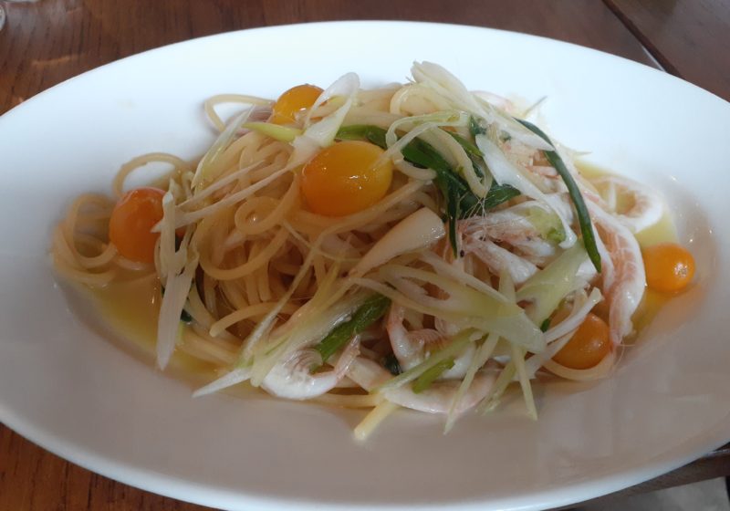 最近レストランで食したエビのスパゲティ