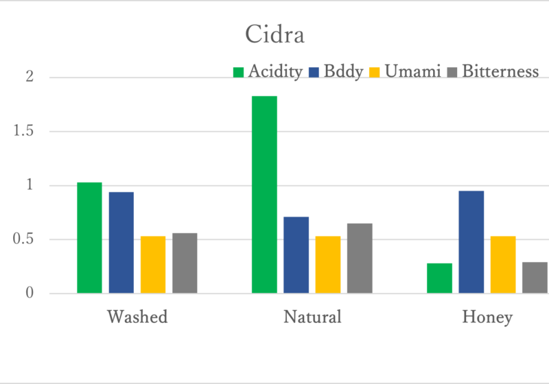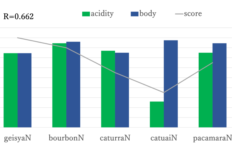 「ゲイシャ、パカマラ品種以降の新しい品種について」を官能評価と味覚センサー値の相関の