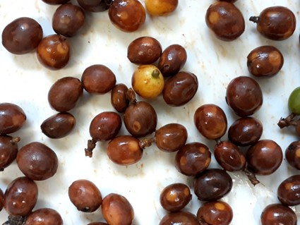 収穫したコーヒーを2つに分け乾燥工程に