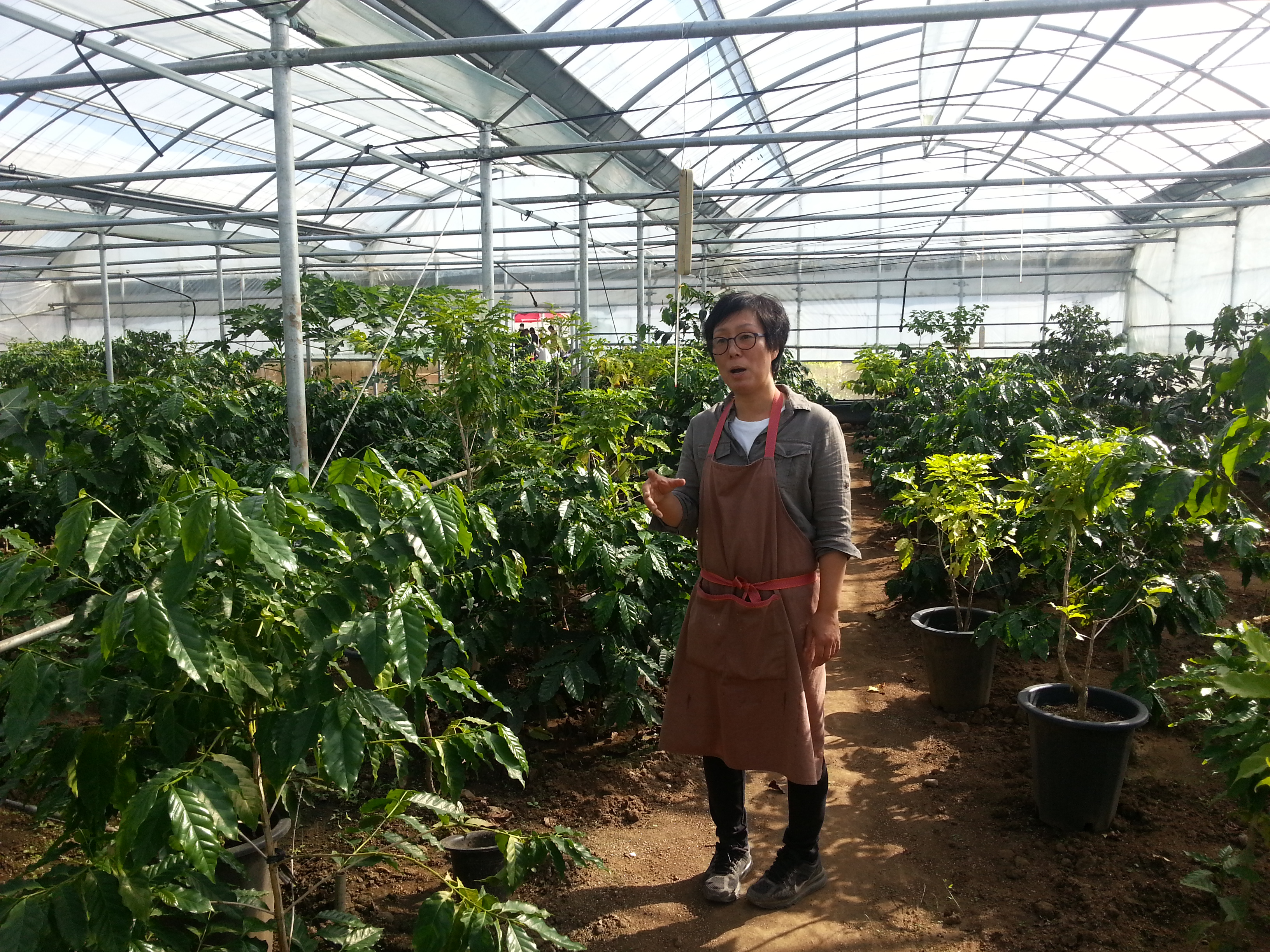 コーヒーの栽培適地ではない為ハウスで栽培するウさん(私のセミナーの受講生)の観光農園。