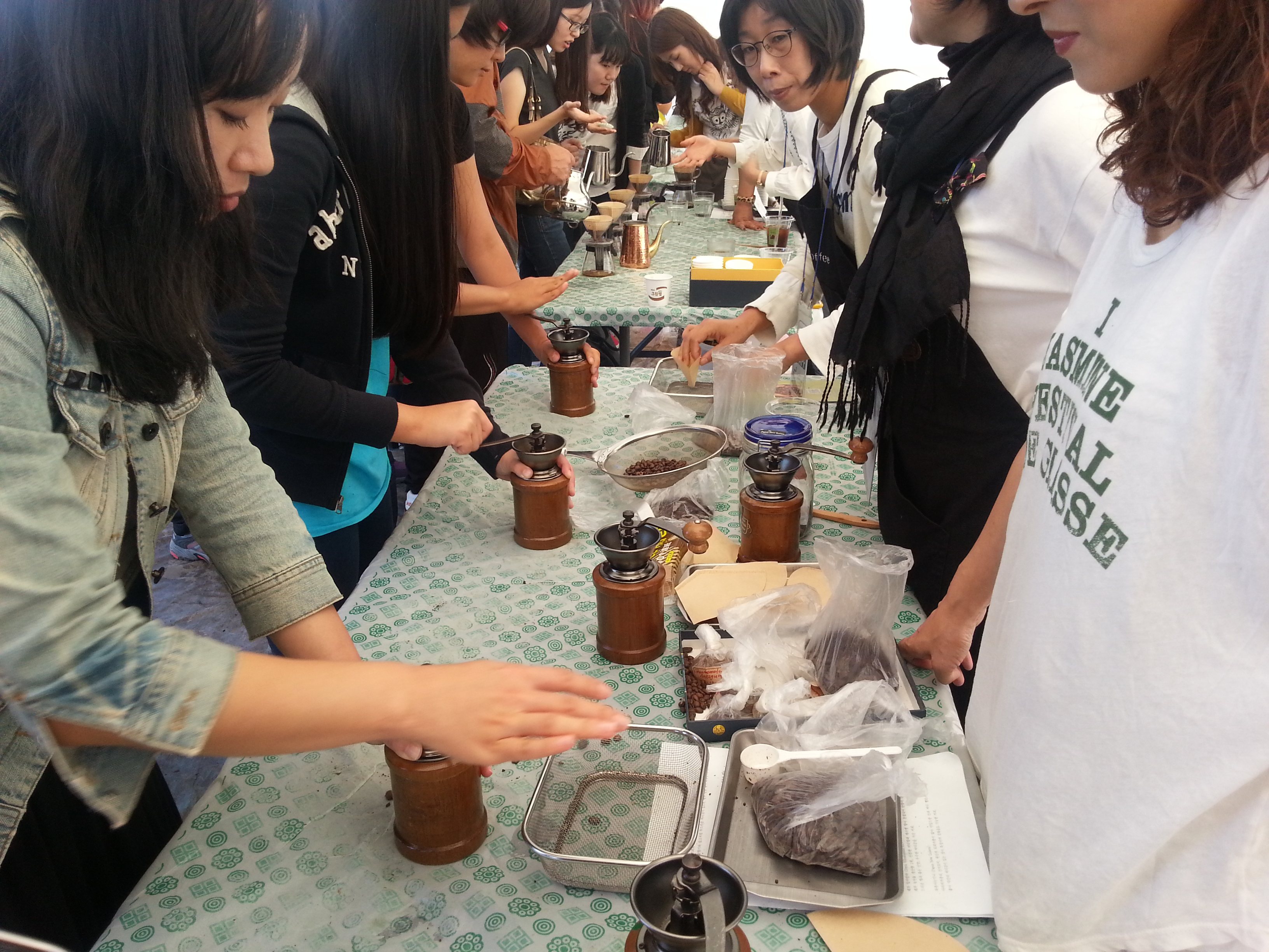 2日で1000人の入場者。多くの家族ずれが、コーヒーの木と実を見て、実際に手編みで焙煎し、粉にして、抽出してコーヒーを楽しんでいました。