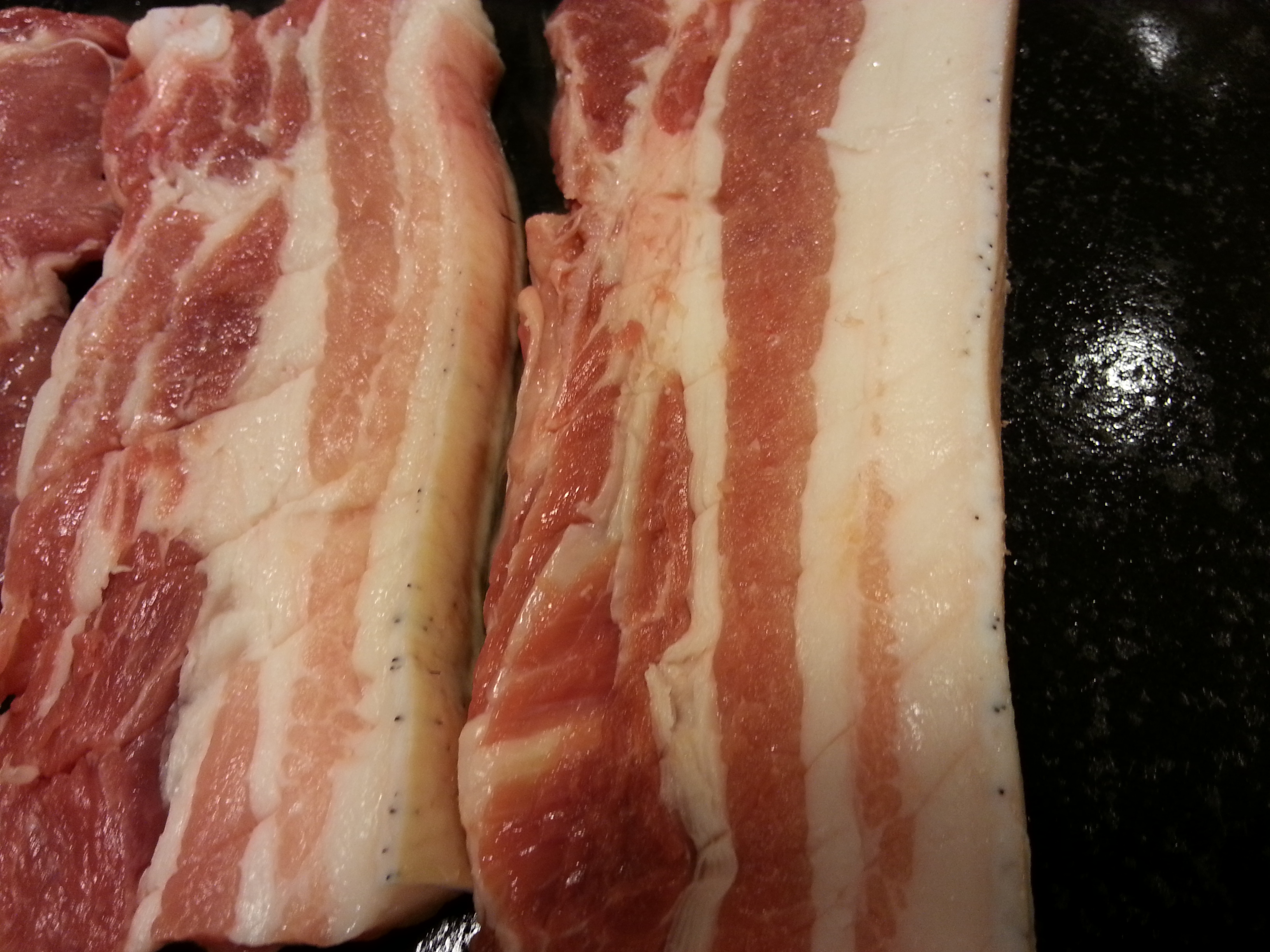 脂身の右に黒い点々が見えますね。黒豚です。