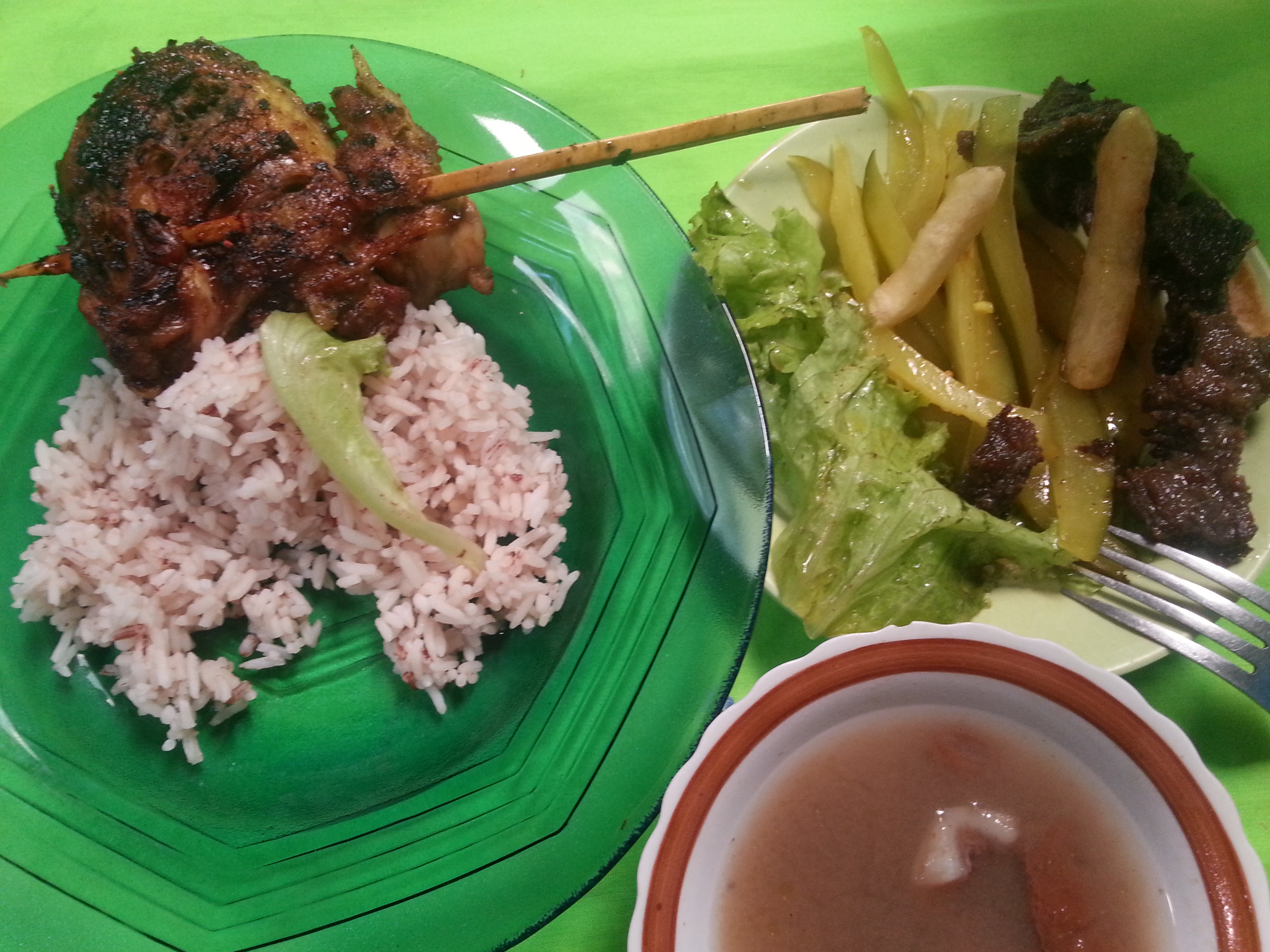 現地の人向け食堂で3ドルくらい。現地としては以外に高いかも。
