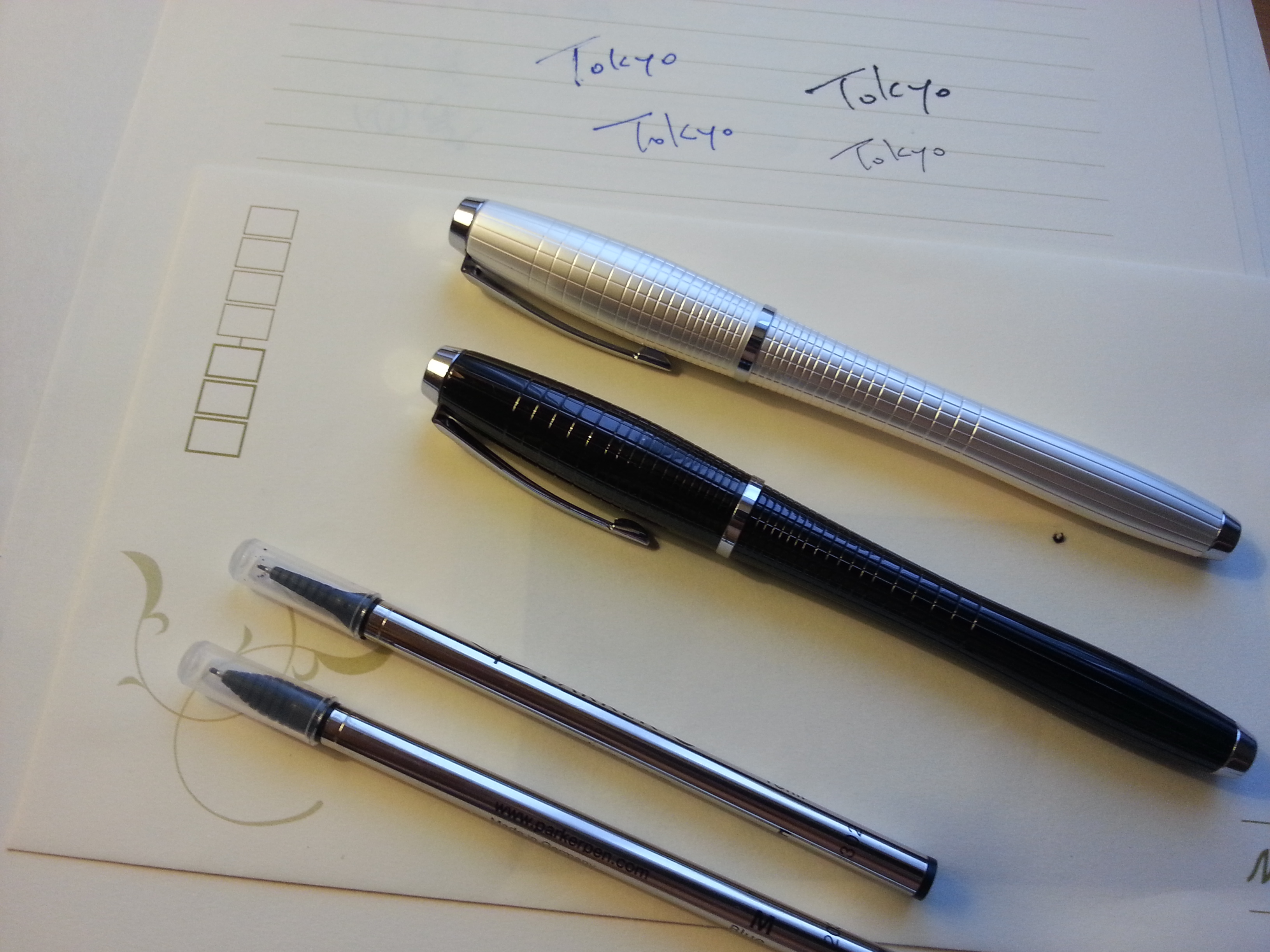 パーカーの第5世代ペンにはまっています。万年筆、シャープ、ボールペン、ローリングに次ぐものとの宣伝です。飛行機の免税で買って試したところなかなかいい。文字を書くときの角度が微妙です。海外では太字、日本では細字が標準装備さされています。(漢字を書くため)