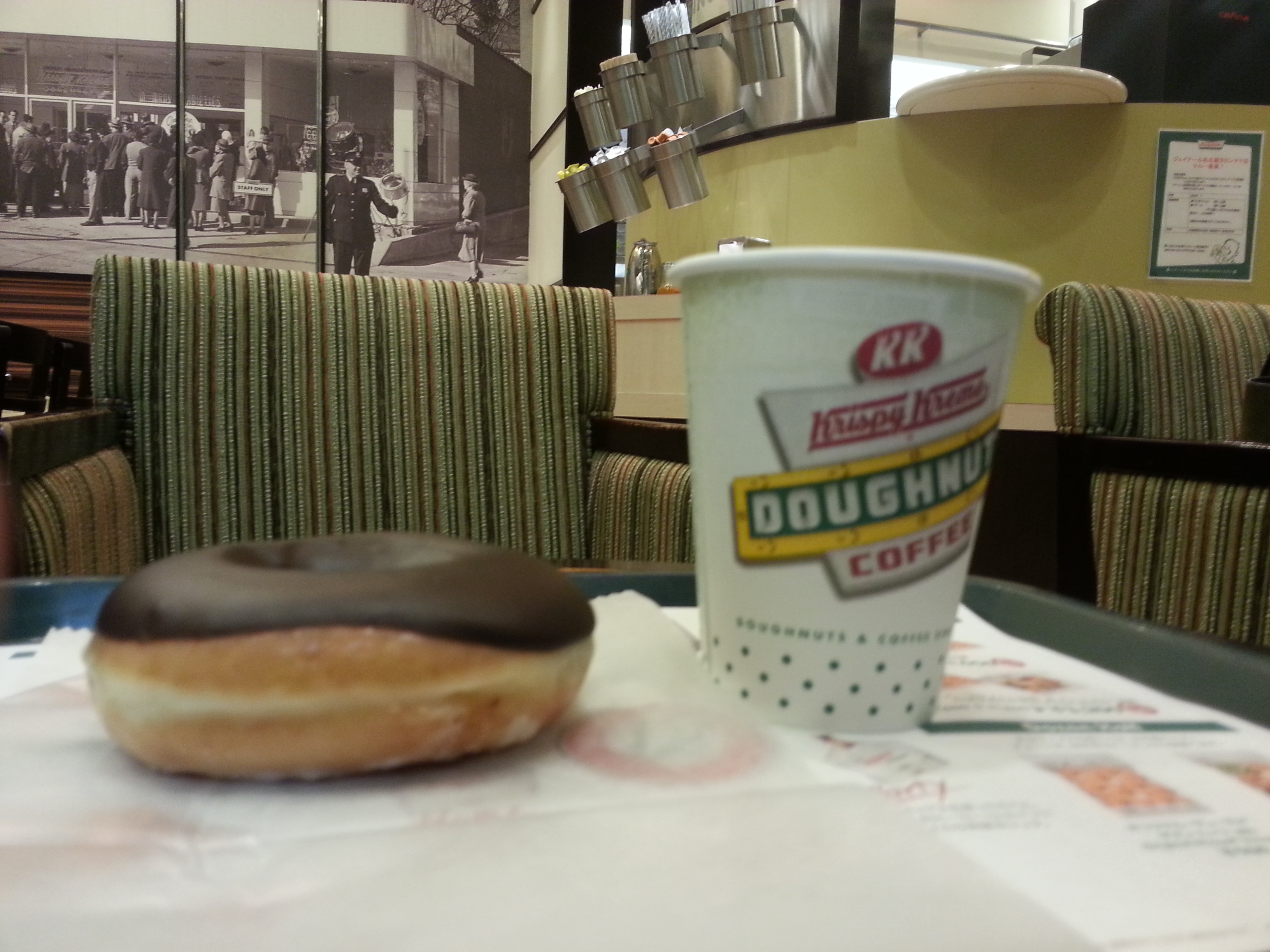 甘いドーナツとコーヒー。毎日健康的な昼食です。