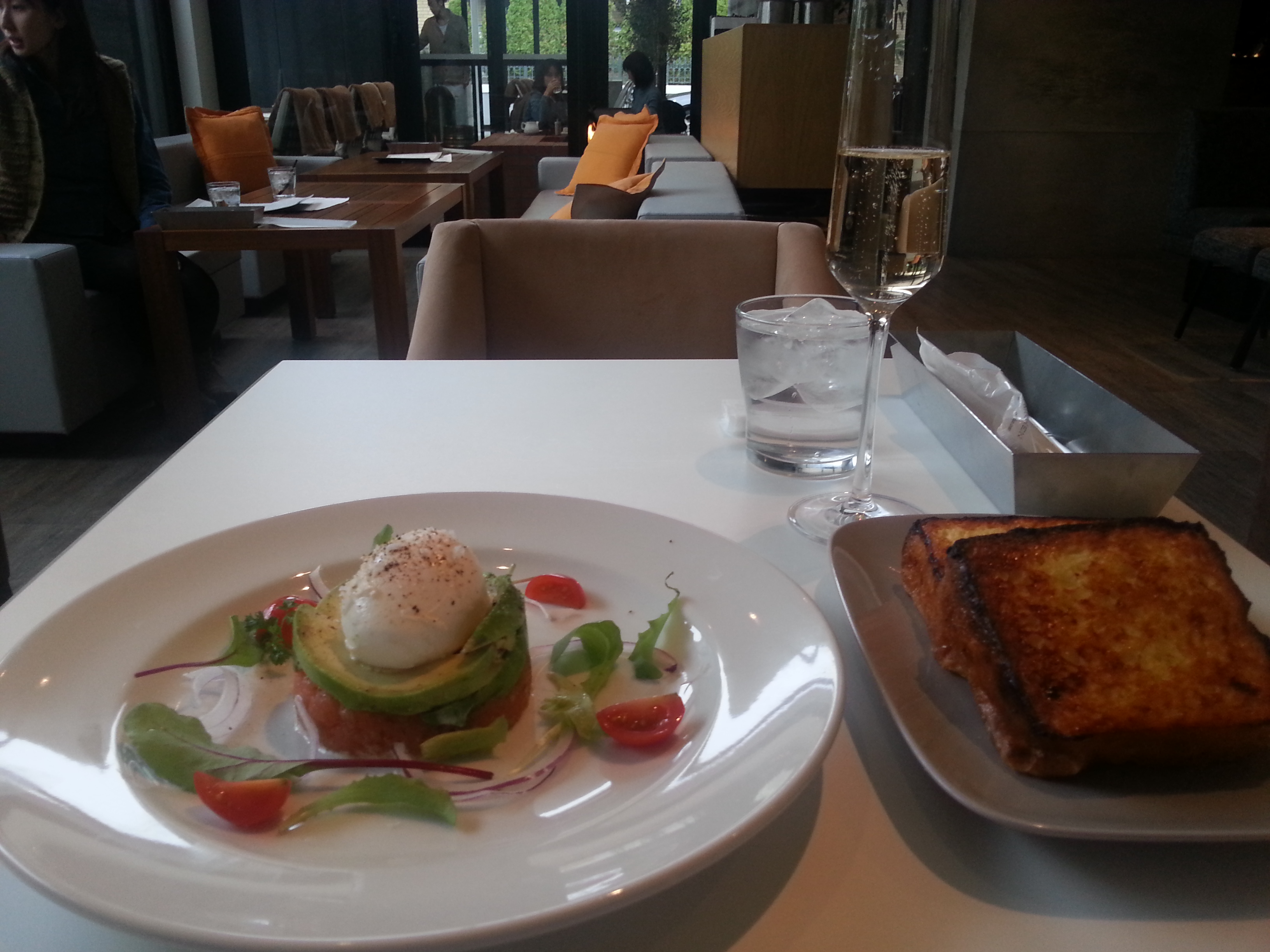 サーモンとアボガド、ポーチドエッグ乗せ。味は…..。