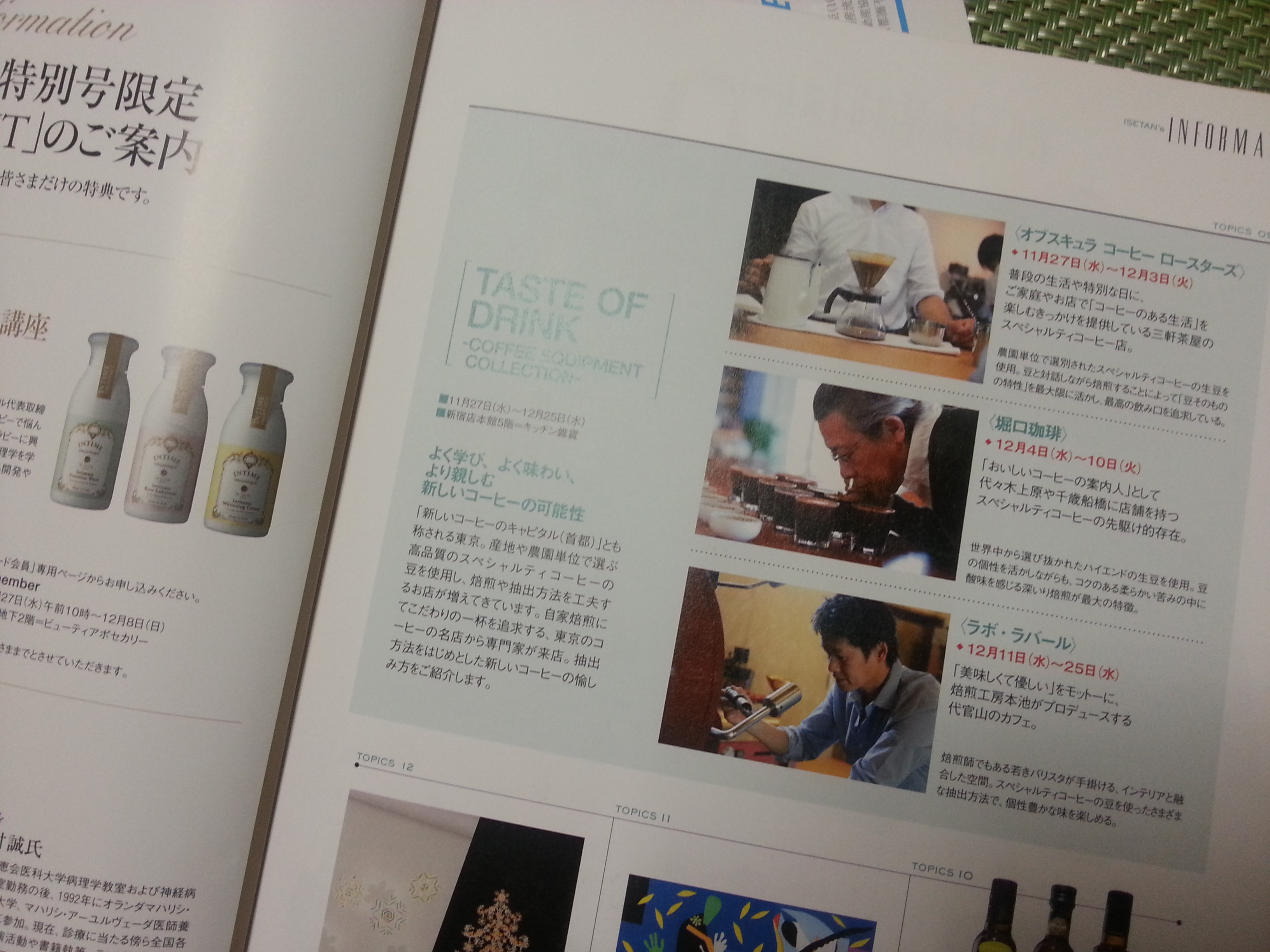 パパ日記 新宿伊勢丹5階 「TASTE OF DRINK」 2013.11.22 日記 新宿伊勢丹5階キッチン売り場でのイベントに参加します。 「taste of drink」 12/4から10まで5階キッチン売り場 楽しいコーヒーライフをご提案致します。 また1月にも地下1階でのイベントも予定しています。 カテゴリ内の一覧をみる
