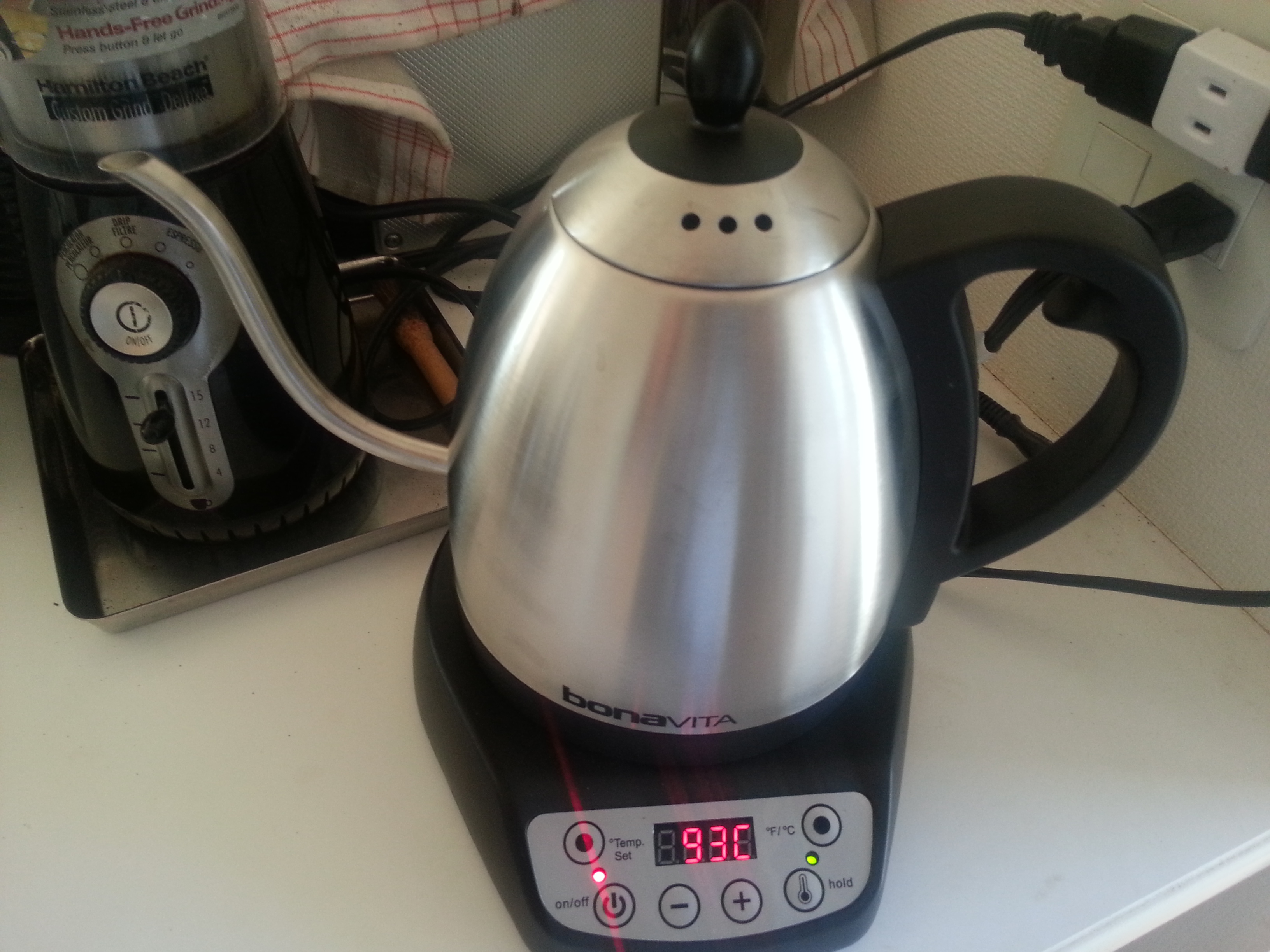 パパ日記 BONAvita 2013.11.23 日記 湯沸しポットですが、湯温度を設定でき、ホールドできます。 沸騰した湯を注がなくてよいので、Russell Hobbsよりは機能はいいですが、デザインを今少しよくしてほしいですね。 写真は基本の93度に設定しました。 カテゴリ内の一覧をみる