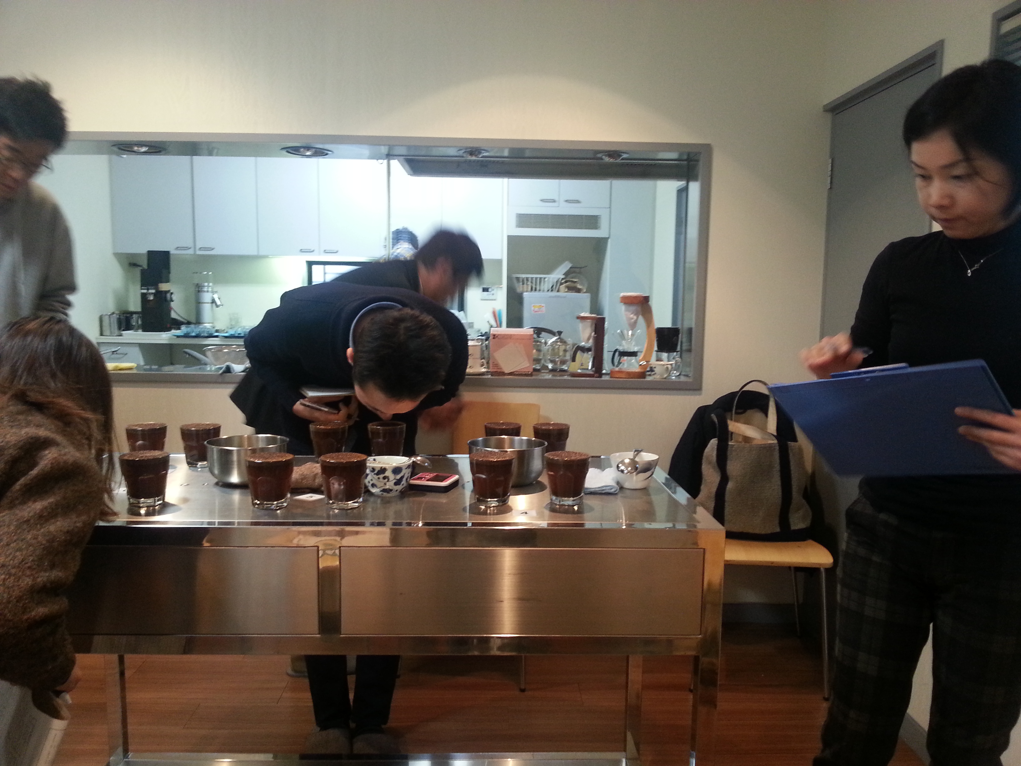 ブラジルの各産地のコーヒーと精製の味の違いを徹底的にカッピングする。産地解説は伊藤が担当。