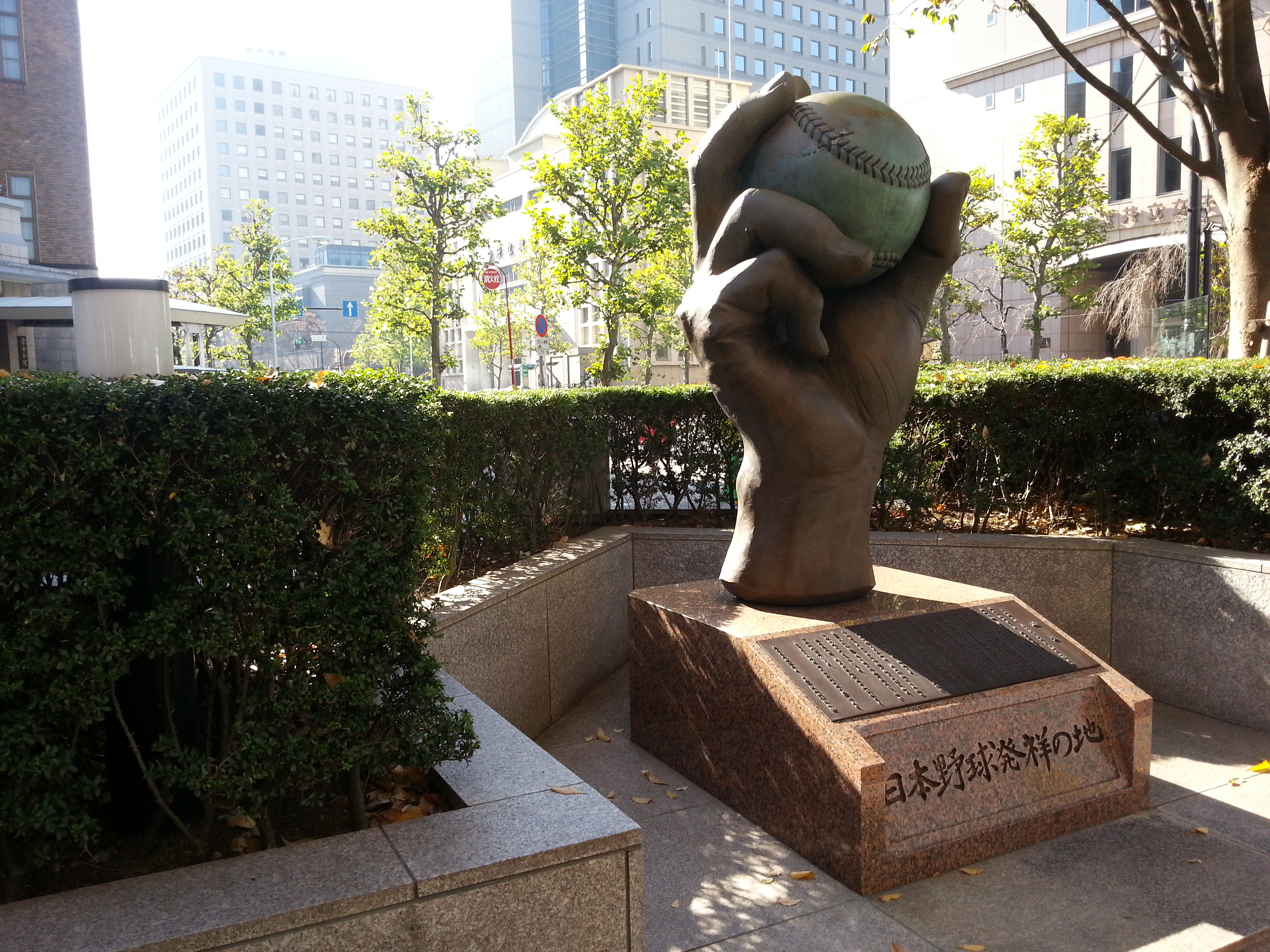 野球発祥の記念碑と講演風景