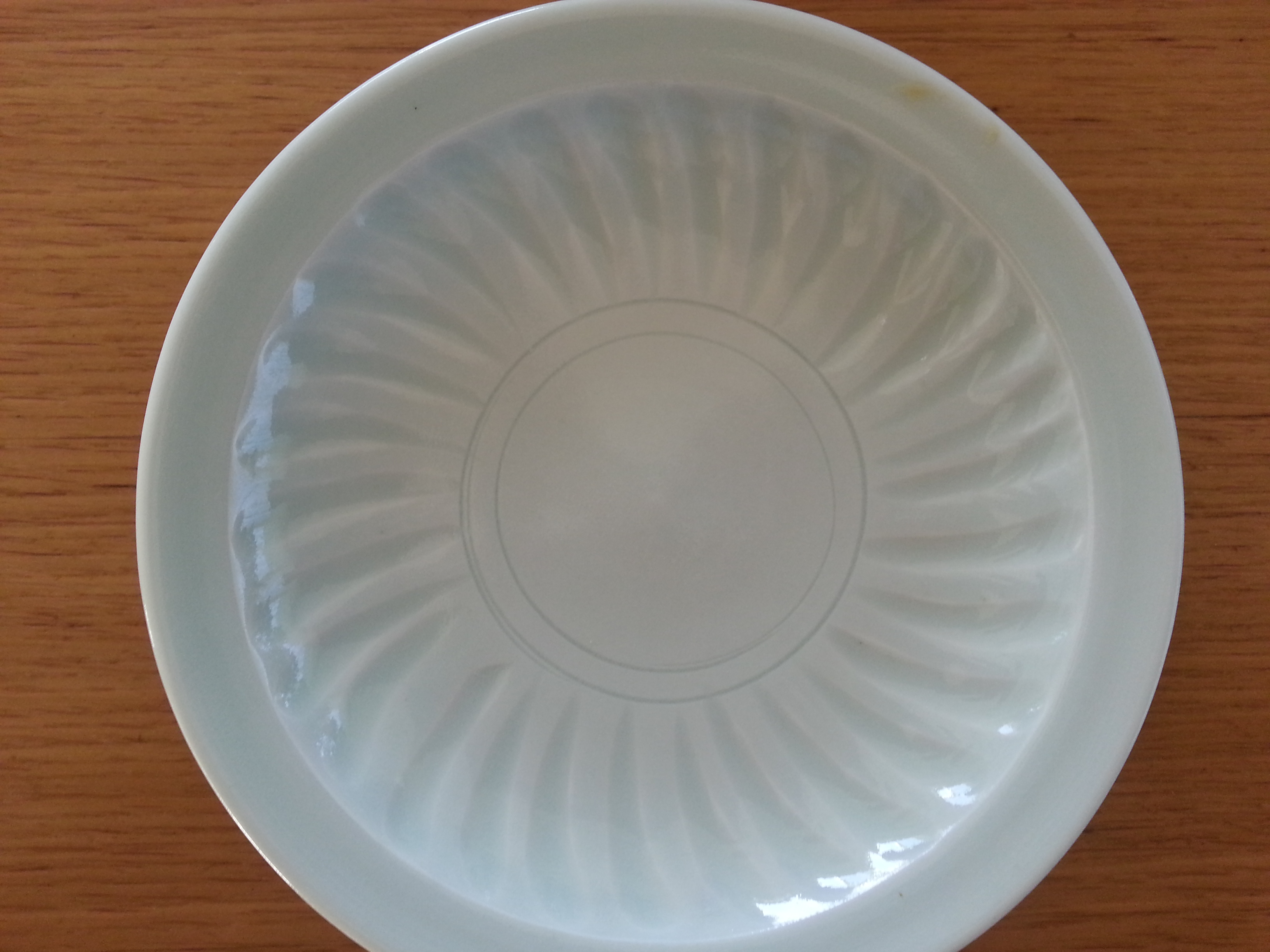 白磁のカップ。模様の凹凸は型ではなく手で彫ったものです。