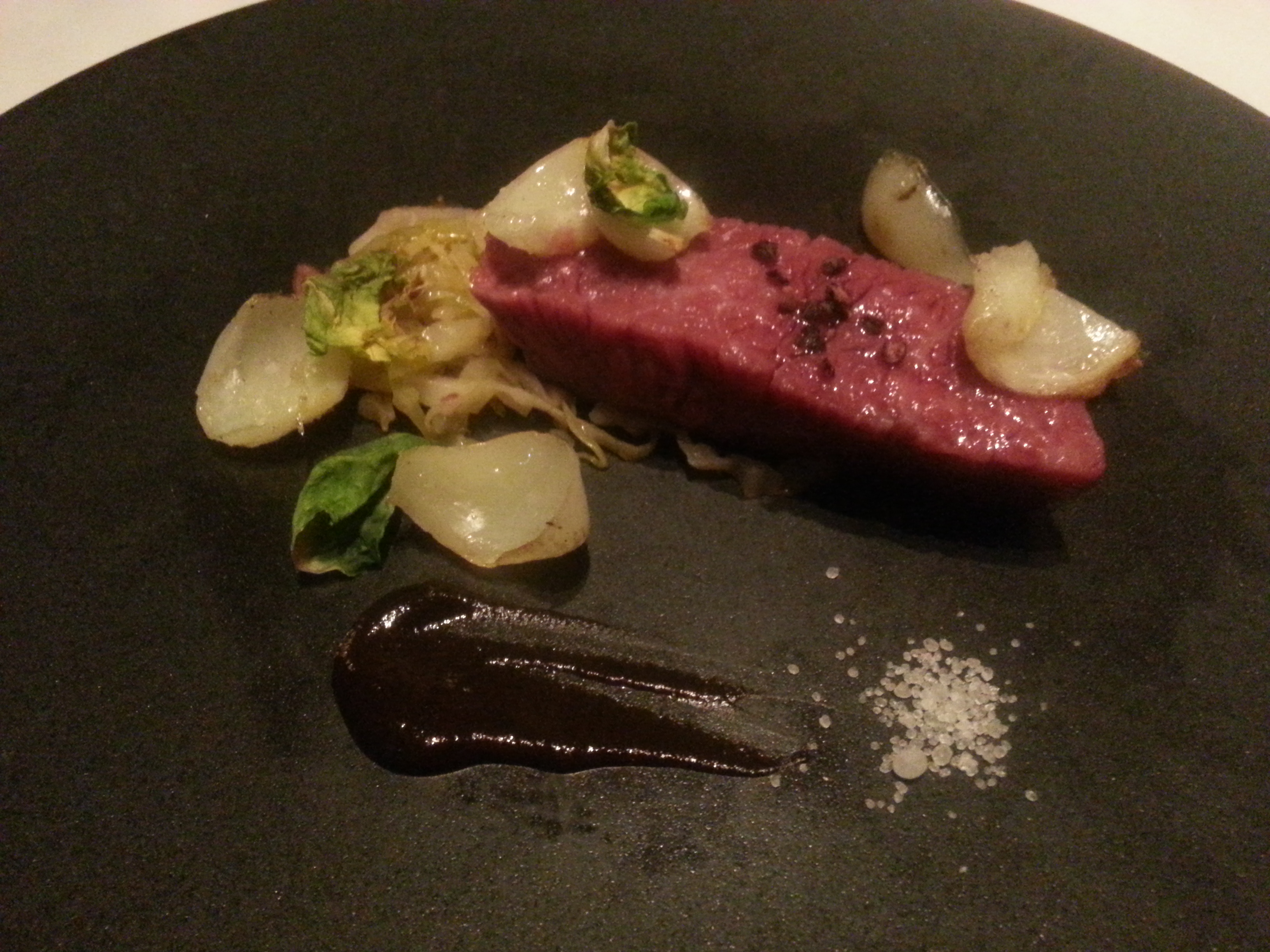 メインの熟成肉はパリのフレンチ「パスカル・バルボ」、そして日本のフレンチ「カンテサンス」あたりから普及しだした定温調理のようで素晴らしい味でした。