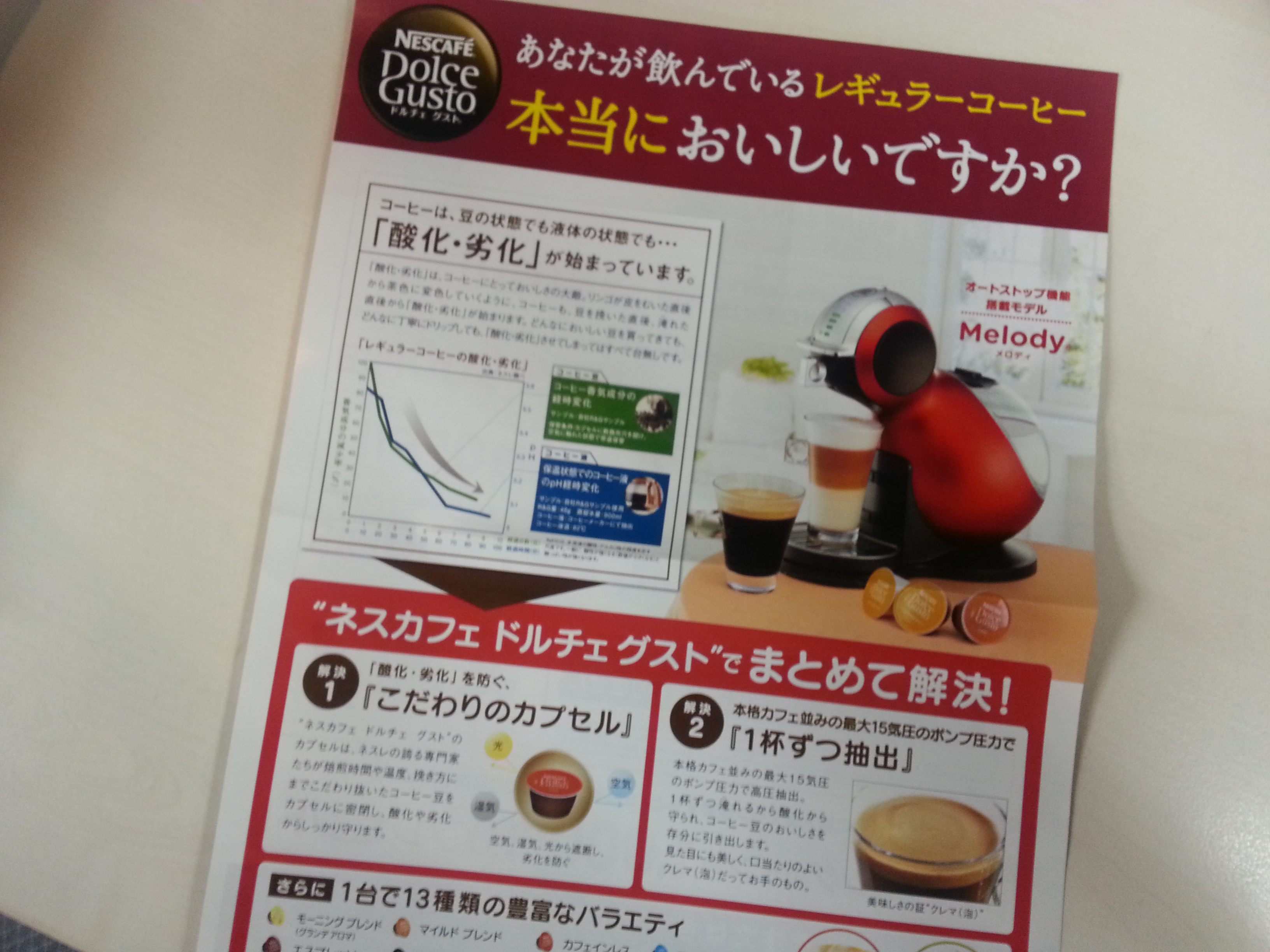 とレギュラーコーヒーマーケットに挑戦的なネスレの「ドルチェグスト」のチラシがよく入ります。