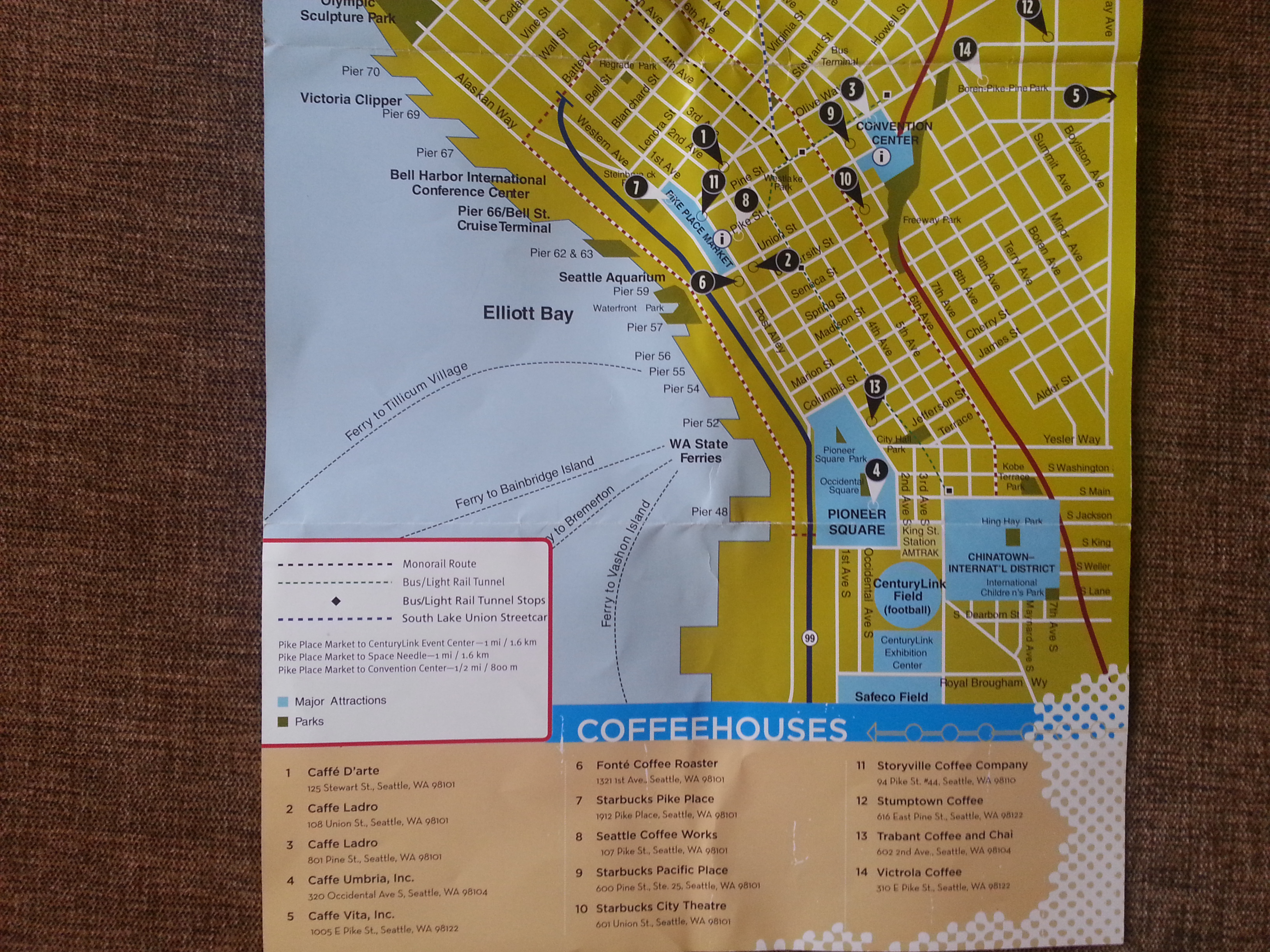 この地図から少し足を延ばすと、シアトル系、イタリア系など様々なコーヒーショップが見つかります。