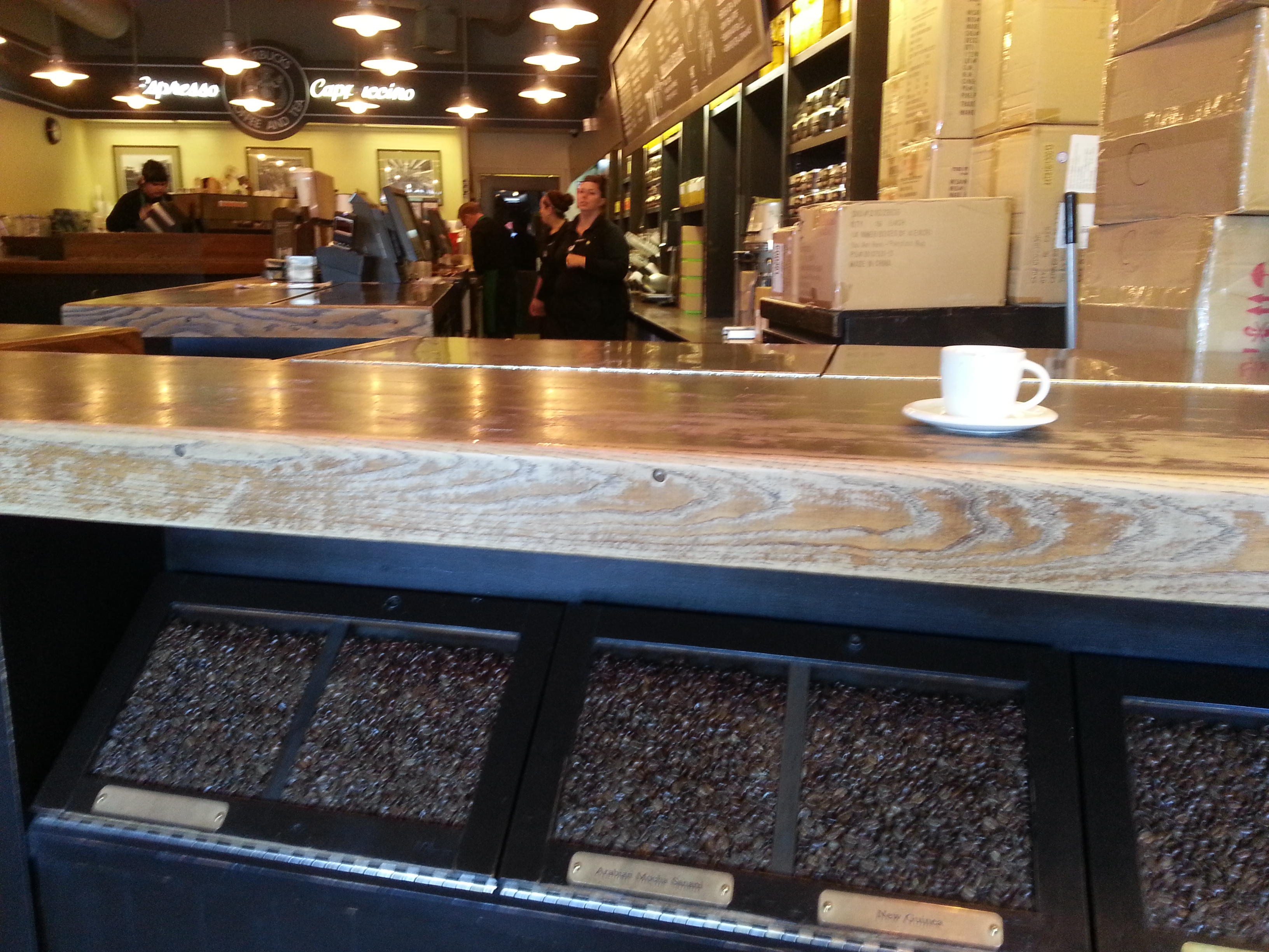 スタバの1号店、カウンター下に豆のケースがあり、昔はこのように販売していたのでしょう。
