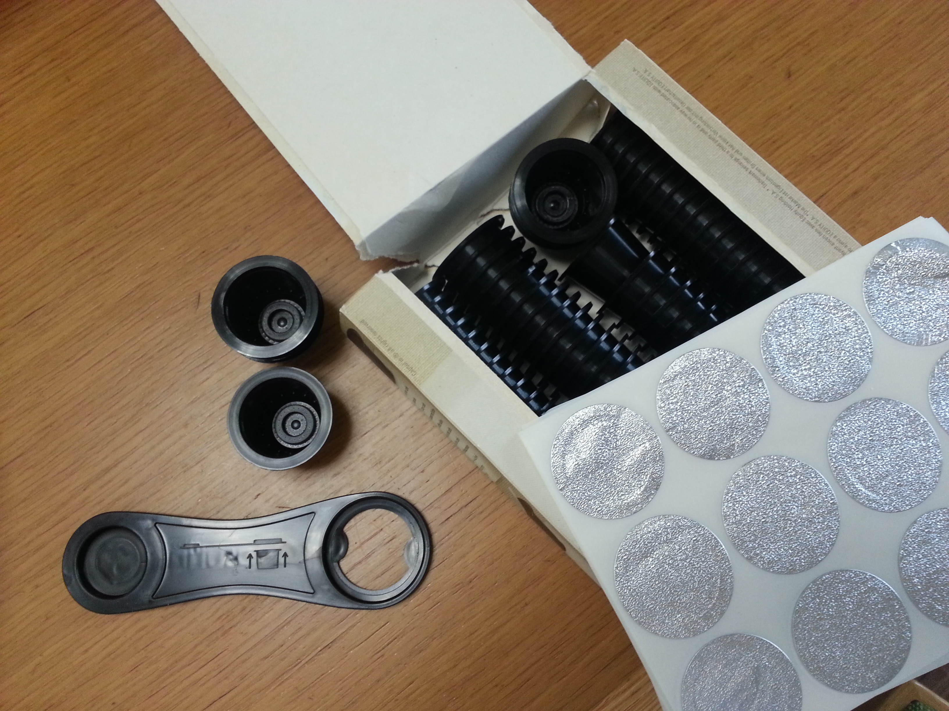 ネスプレッソ用のカプセルを作ります。色つきのものはネスプレッソです。