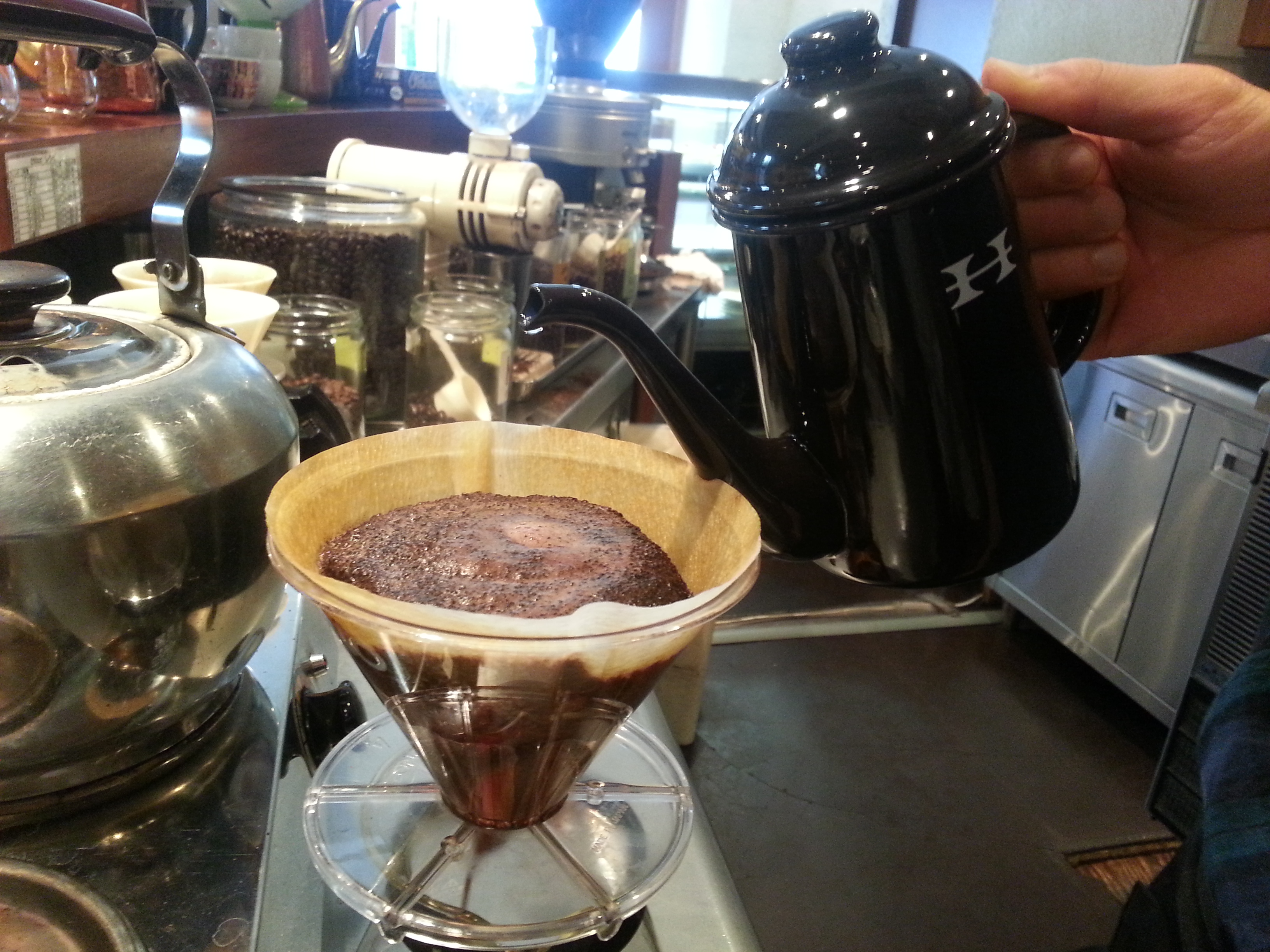 世田谷店でも新しいオリジナルのドリップポットを使い始めました。