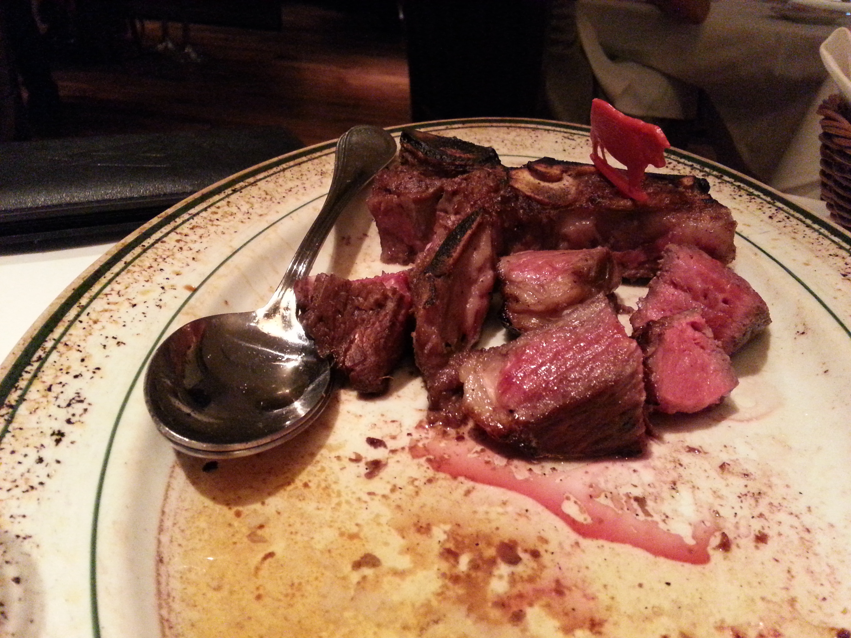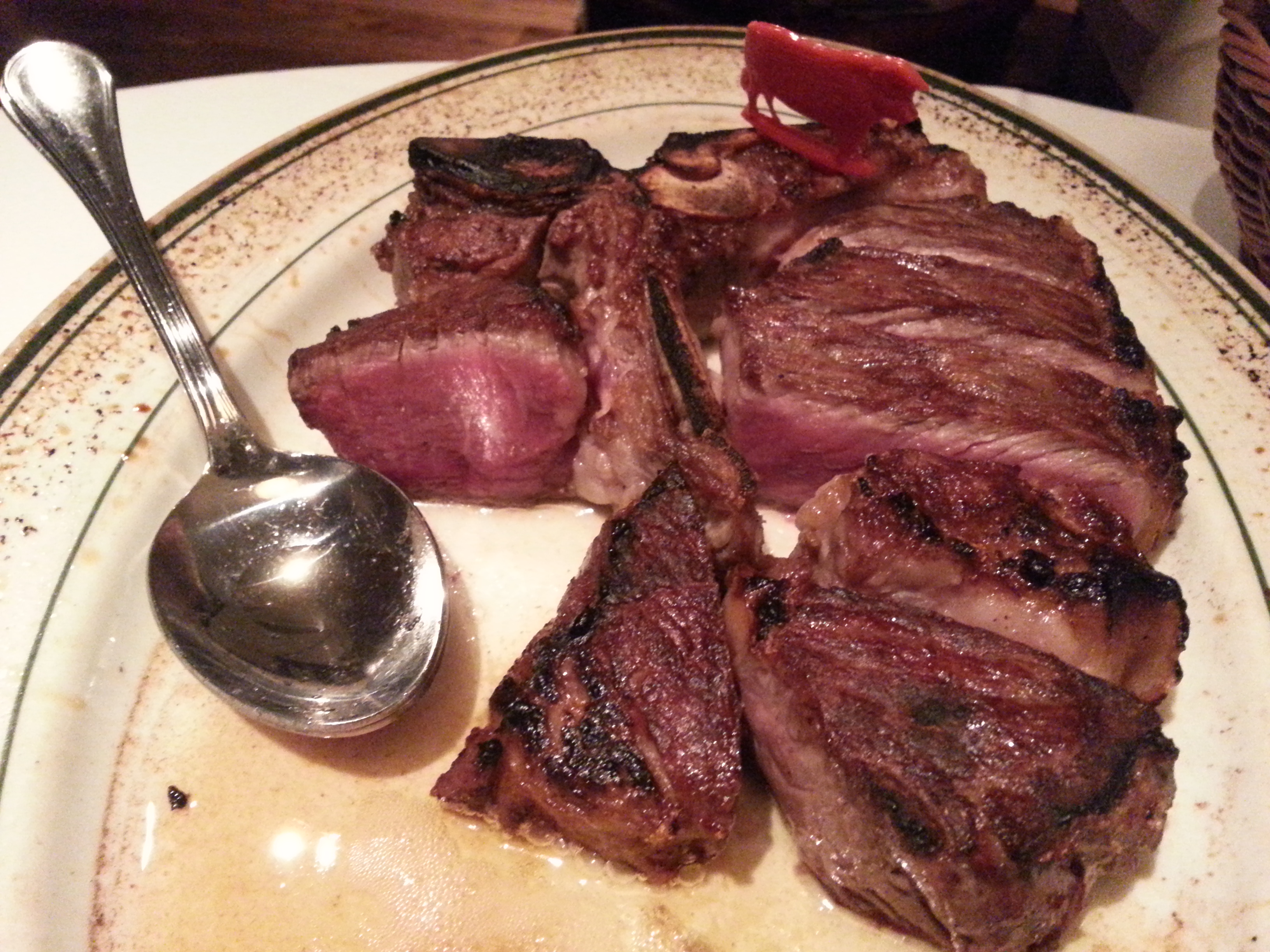 日曜は誕生日の方が多く、ハッピーバースデーの合唱が私の食事中に9組ありました。Tボーンは分厚く2人分750gでレア。
