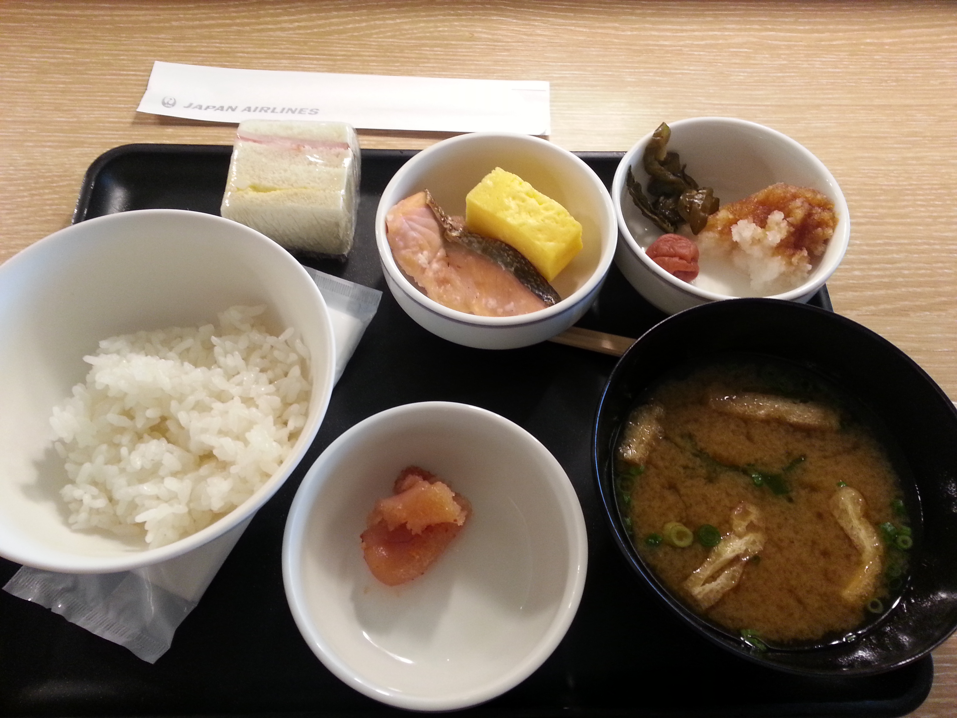 機内では食事をとらないことが多く、ラウンジで朝食を。