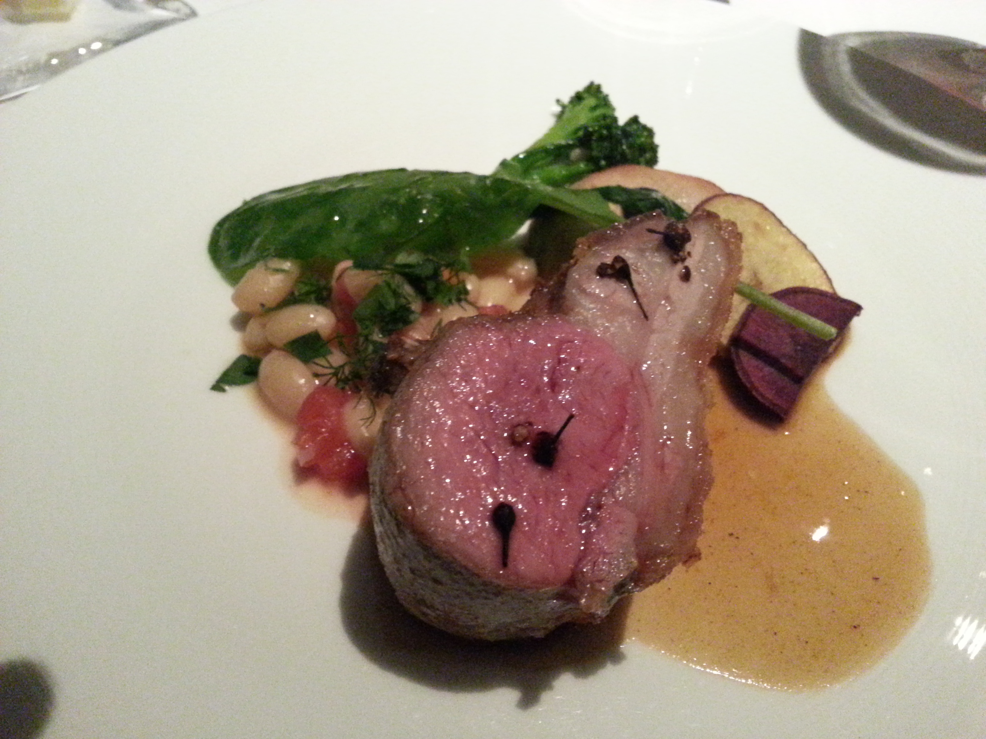 ビストロの基本定番ともいえるパテ・アンクルート(アンクルートは包むという意味)は、パイ生地でパテを包んでいるのですが生地がないほうがいいと感じてしまいましたが、メインのニュージーランドの羊はレアで、脂身もおいしく、いい羊でした。