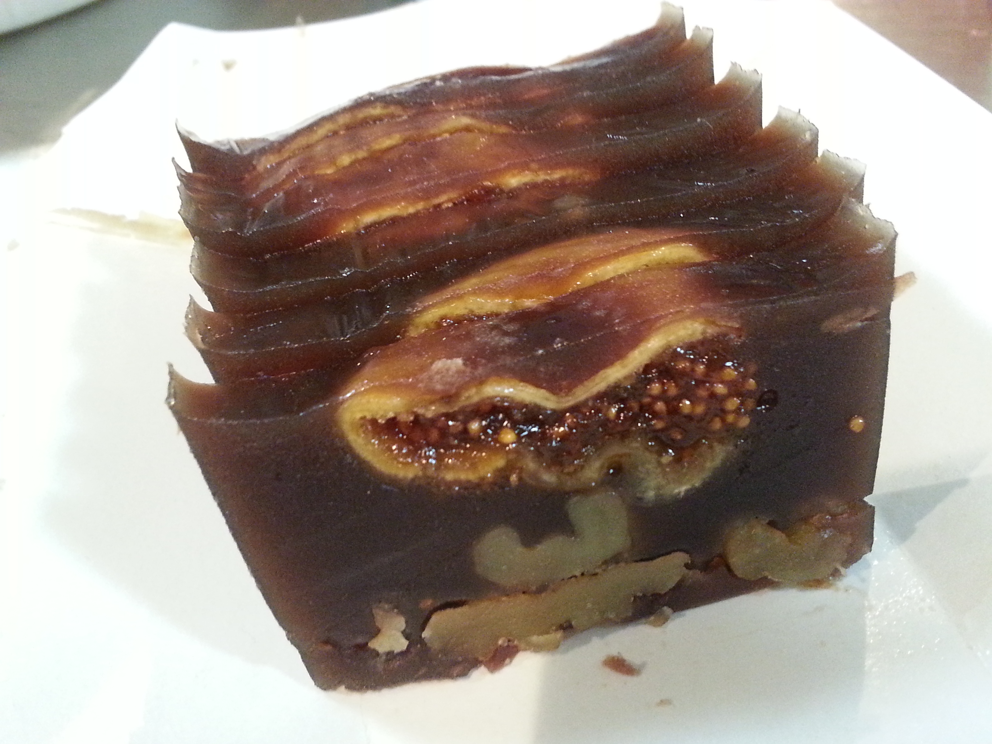 イチジク、いちご、クルミ、ラム酒が入っています。赤ワインい会います。