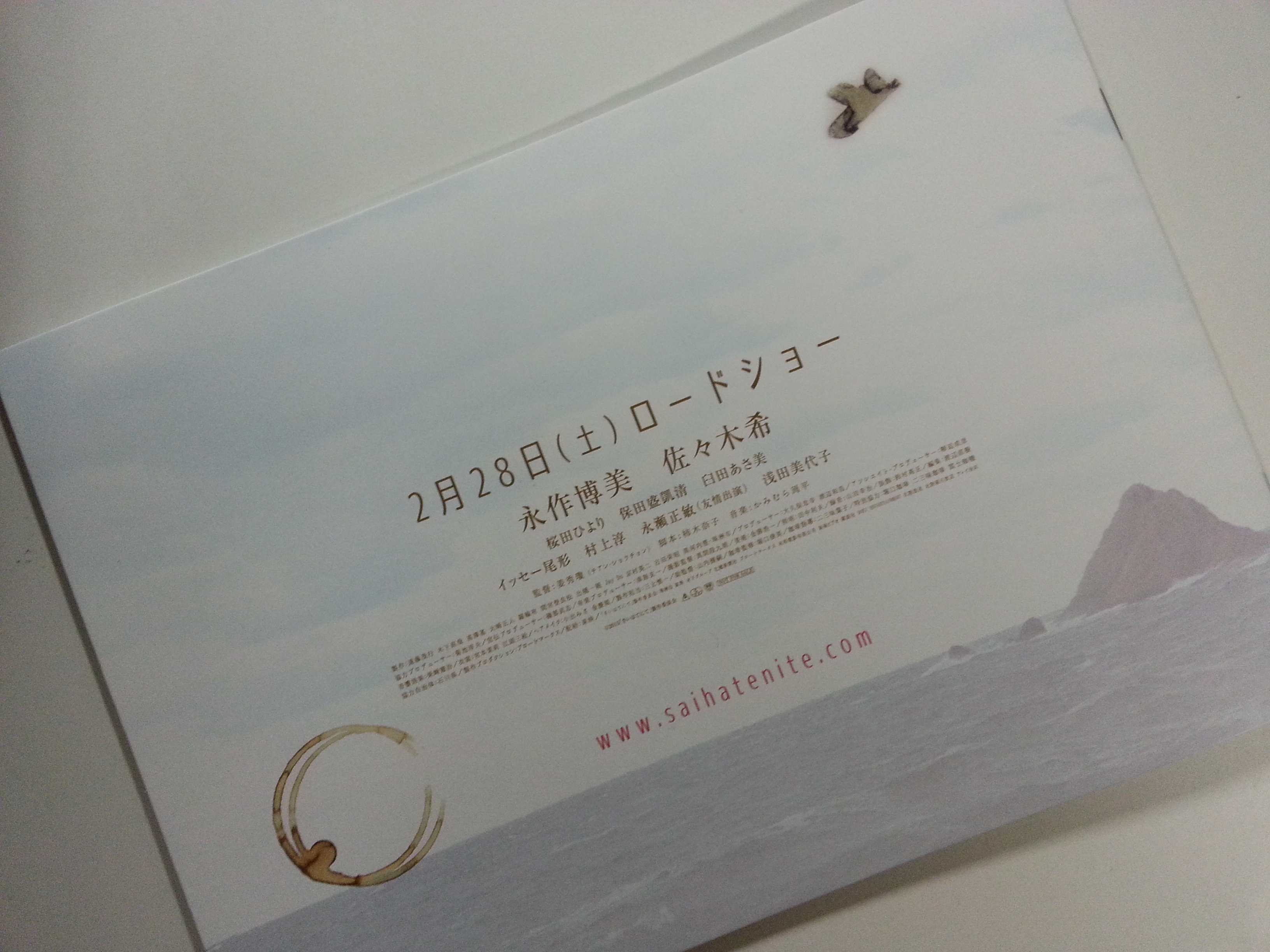 パパ日記 映画「さいはてにて」-6 2015.1.8 日記 公開は2月28日となりました。 尚、主演の永作さんは明日からBunkamuraのシアターコクーンの「PLUTO(プルートゥ)」の舞台公演に入ります。 カテゴリ内の一覧をみる