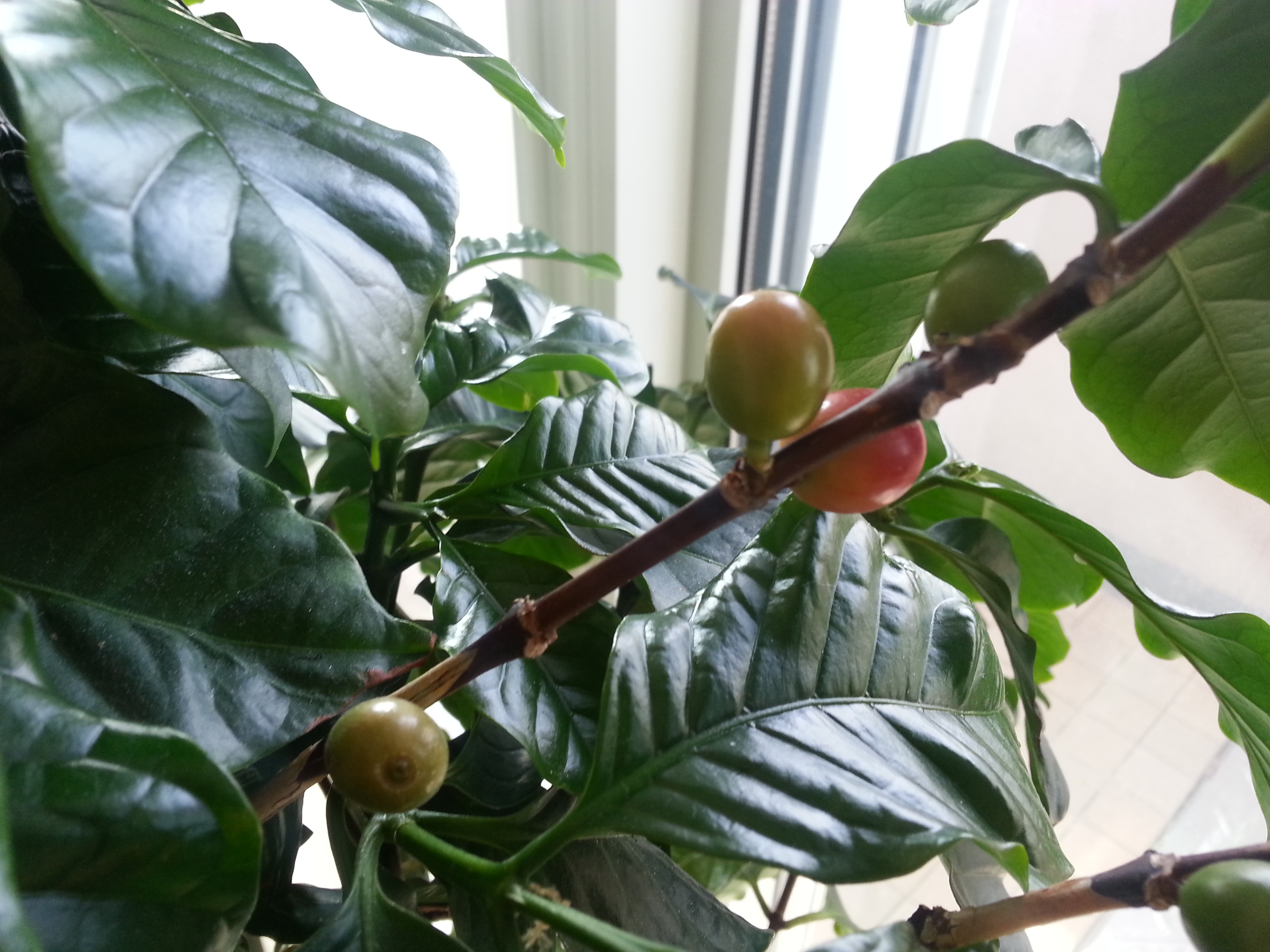 休眠状態から少し日差しを浴びて、チェリーが色着き始めました。