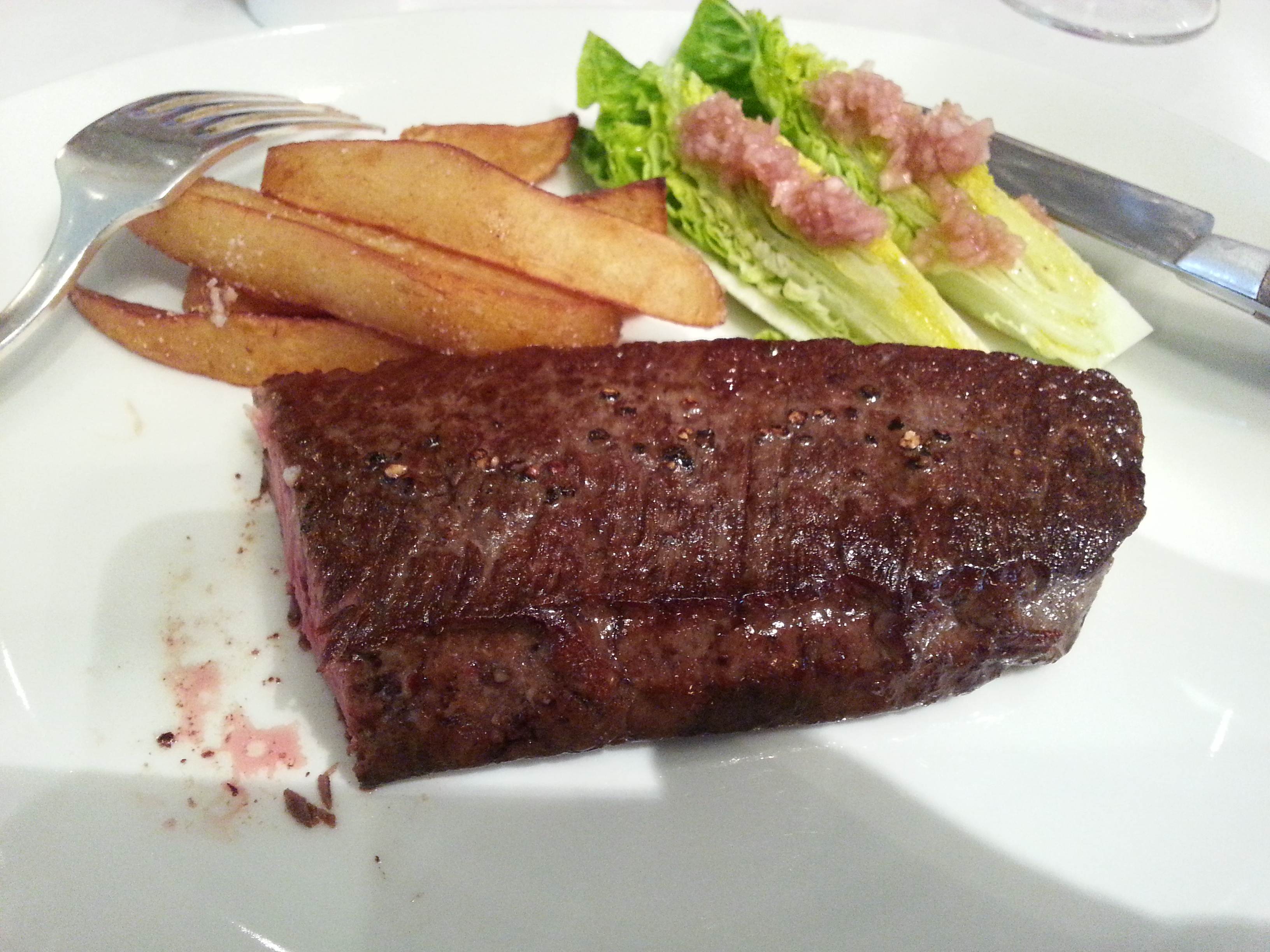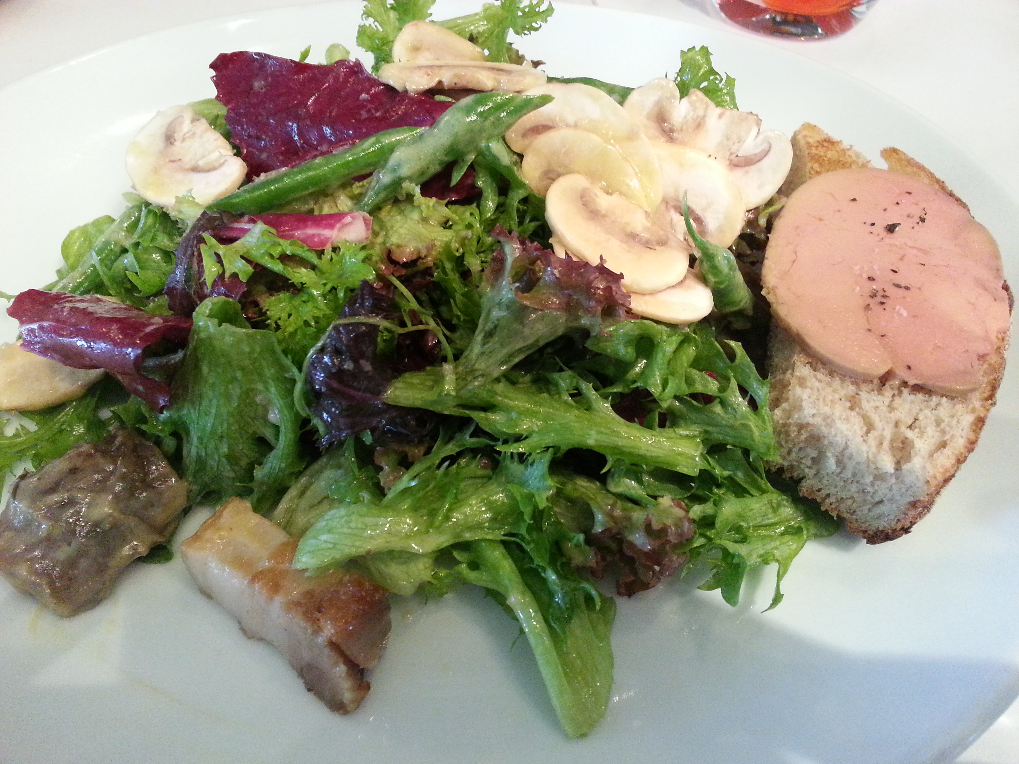 砂肝のサラダ(少しフォアグラのテリーヌ)とランプステーキはビストロの定番でしょうか。