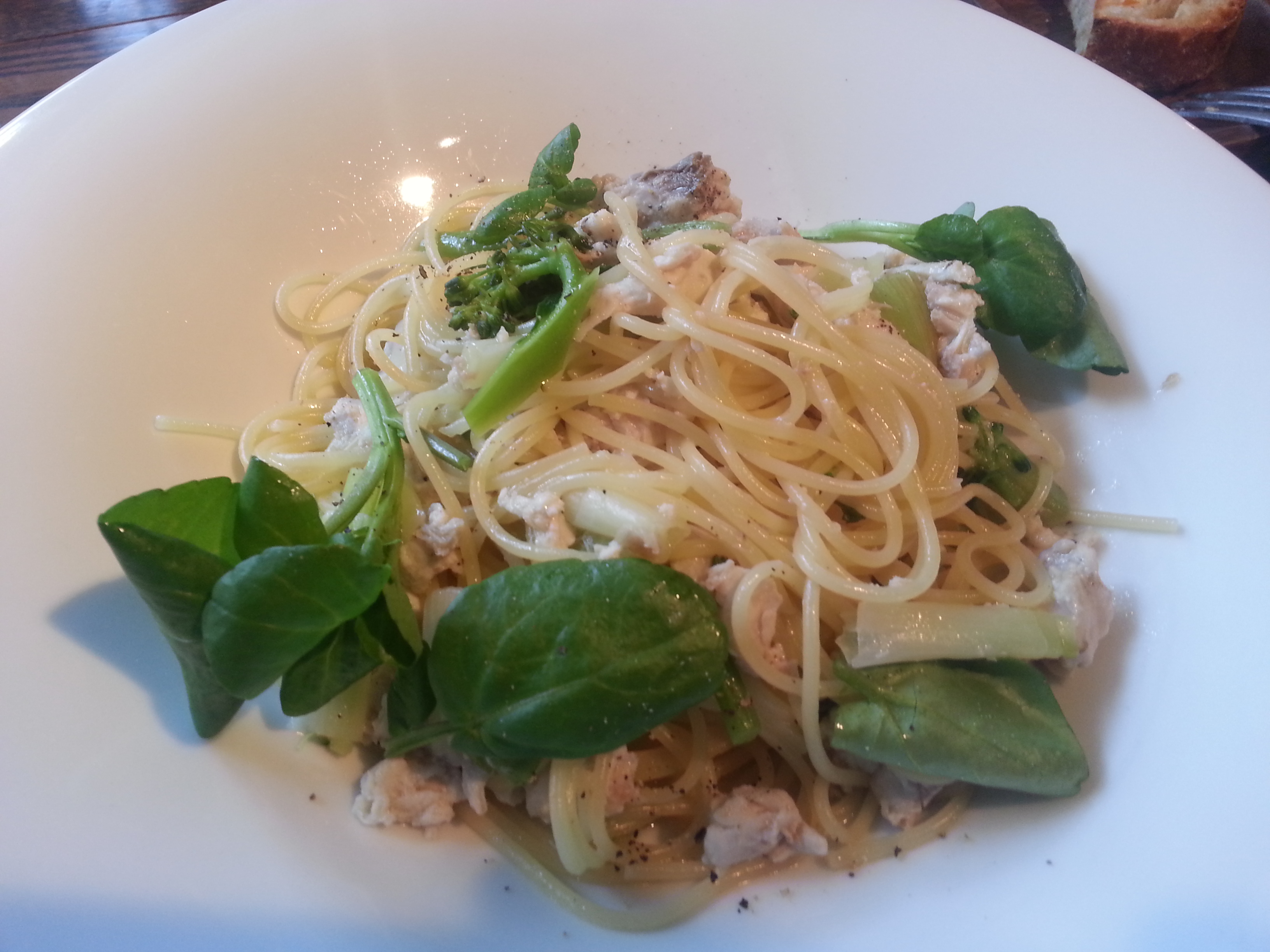 サーモンのサラダにサワラのスパゲティで美味しくいただきました。