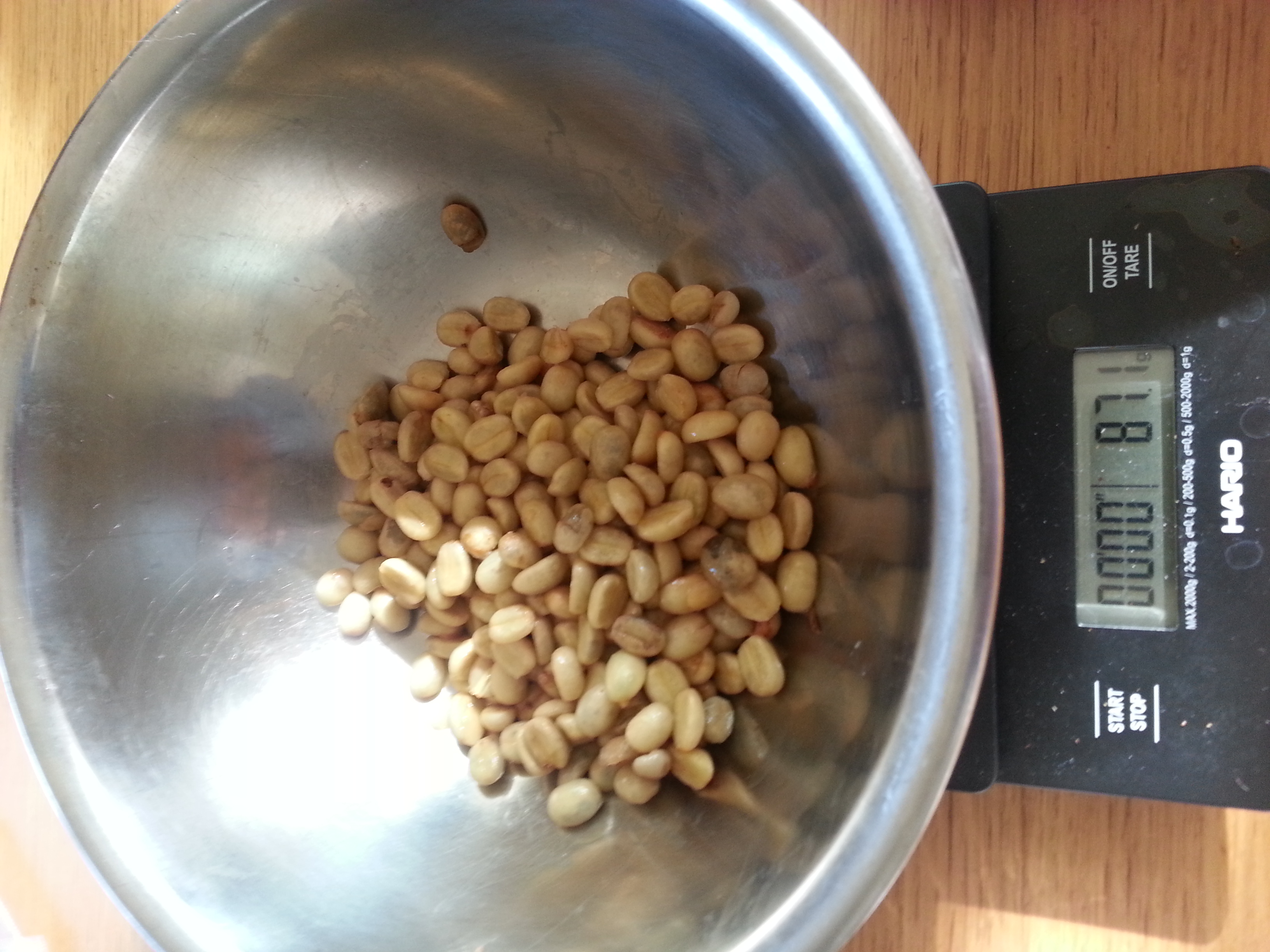 パパ日記 沖縄コーヒー-2 2015.3.5 日記 チェリーを手で剥いた状態。 ウエットパーティメントでぬめり(ミューシレージ)がついた状態。 これをそのまま乾燥するのでパルプドナチュラル。 最終的に焙煎可能の生豆ができるのか? カテゴリ内の一覧をみる