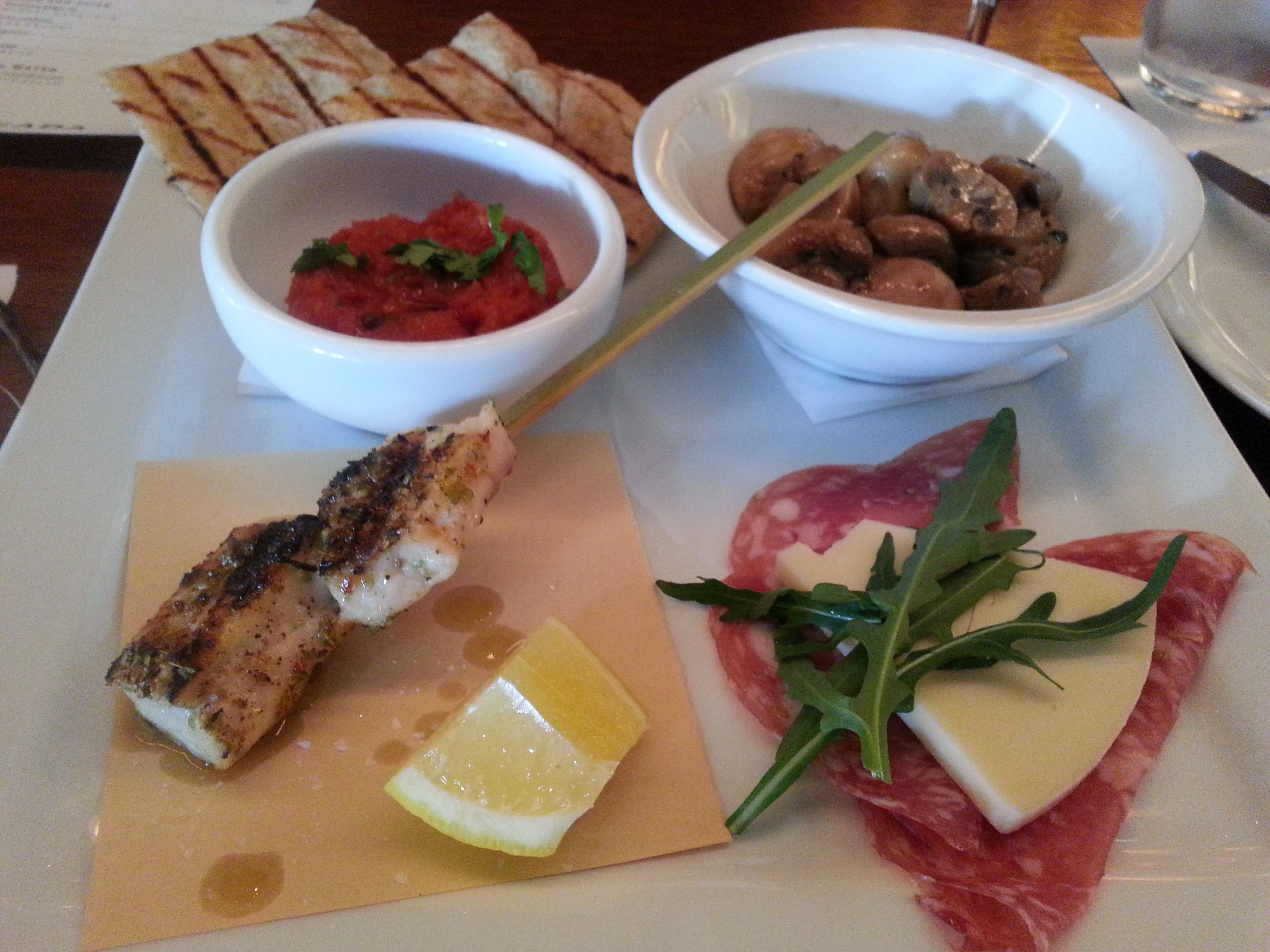 盛り合わせ、サラダ、パン、コーヒー付1700円。