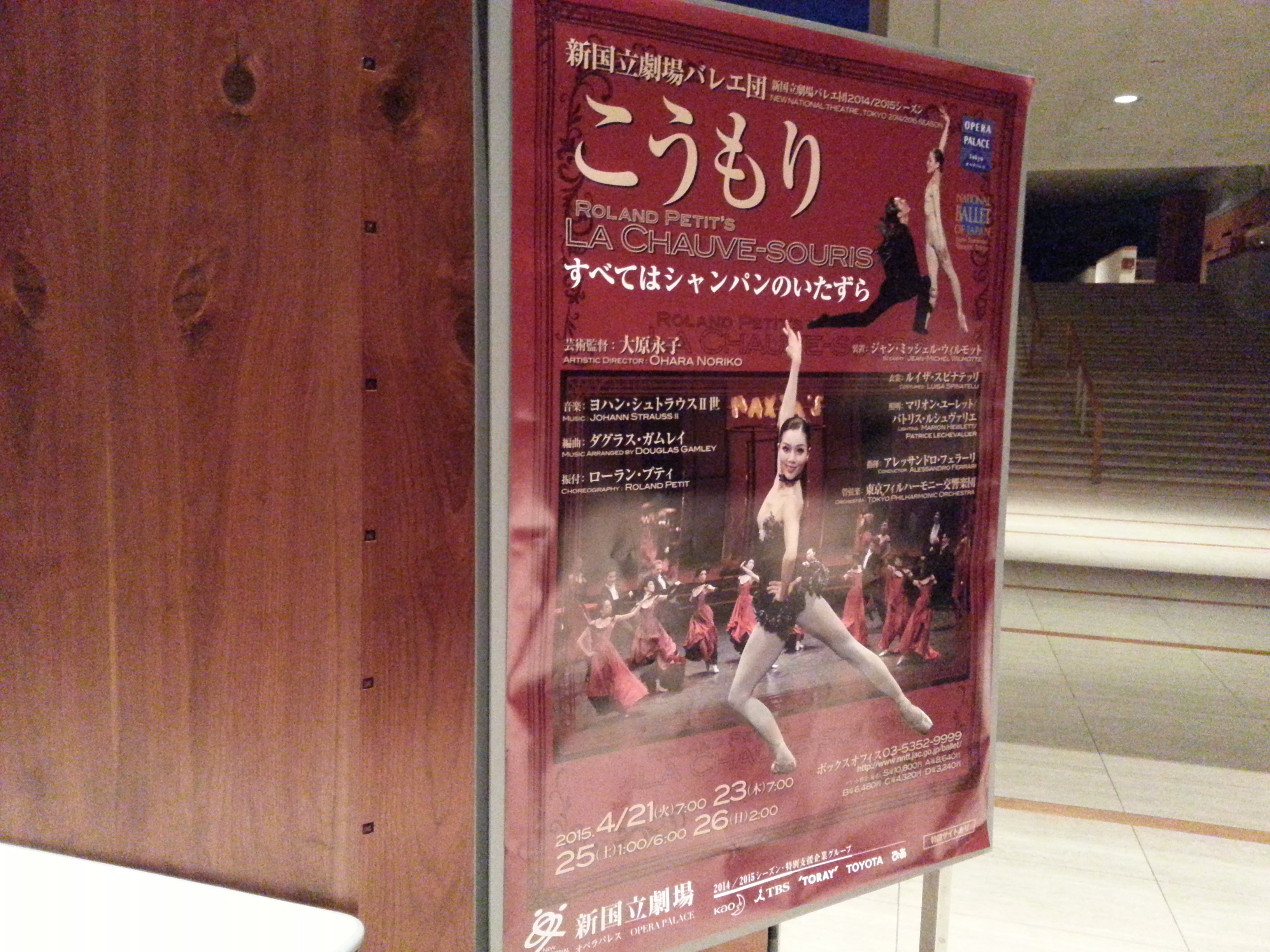 昨晩は、ローラン・プティの創作したバレエ「こうもり」を観に、オペラパレス(新国立劇場)に行きました。新国立バレエ団の公演でなかなかうまくできていました。