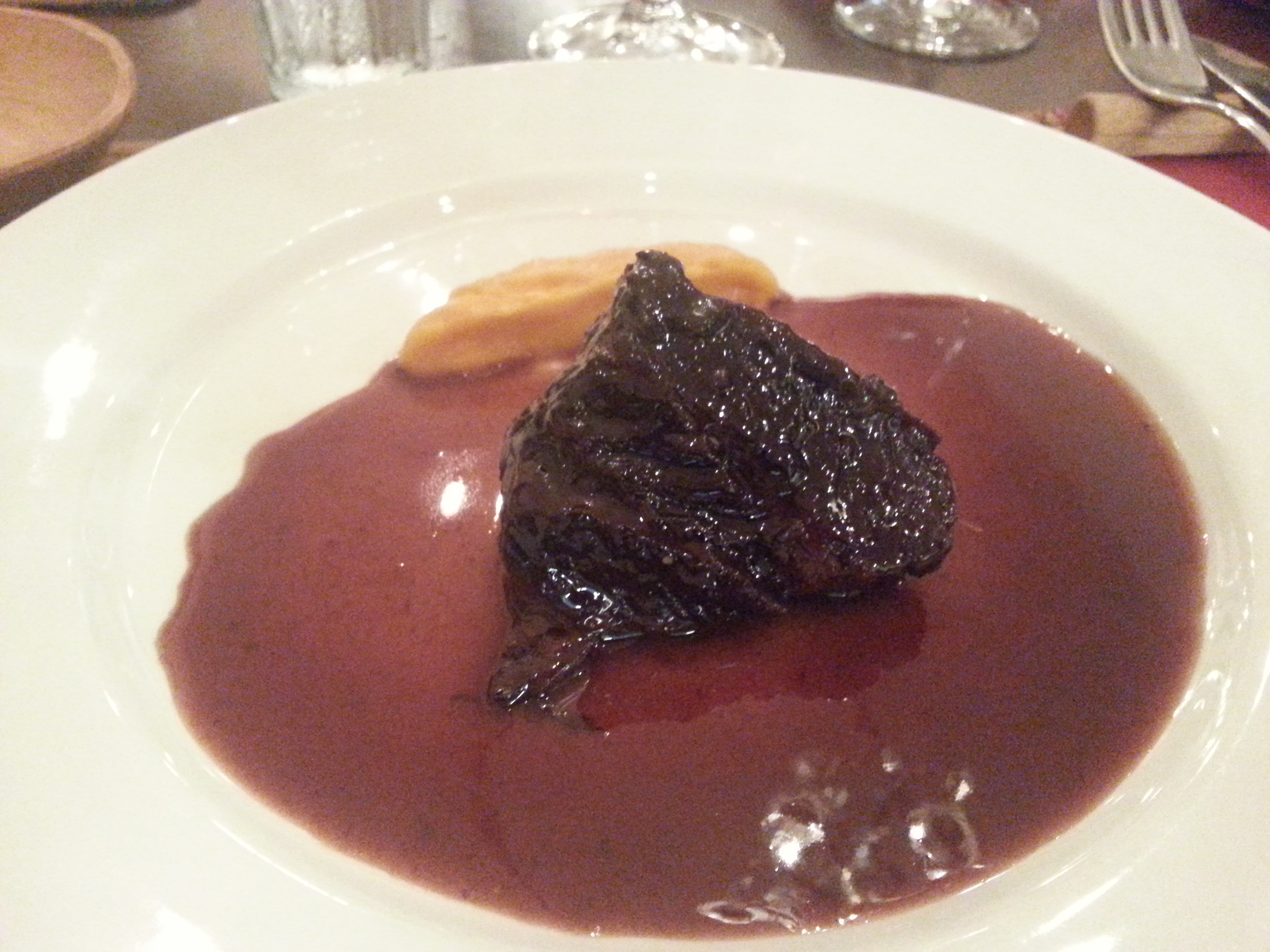 三田の斉須さんのメイン料理である赤ピーマンのムースと牛の赤ワイン煮込(コートドールは牛尾)みを久しぶりにいただきました。デザートをいれ全6品。
