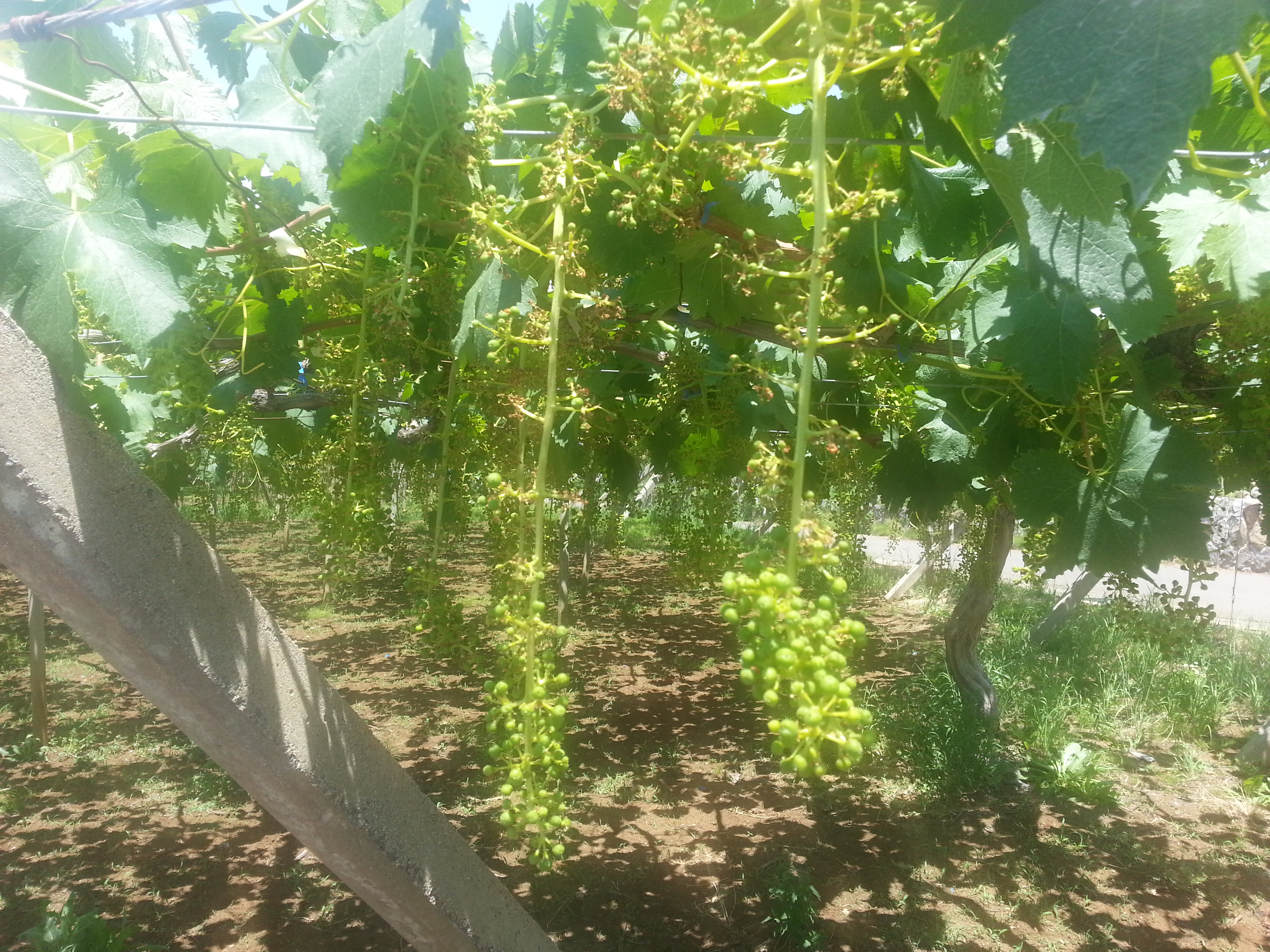 一回目は種無しにするため、2回目はブドウの肥大化の為に行うようですが、この処理をすると粒が大きくなりますので、さらに粒を間引いて房をきれいにする作業が伴います。