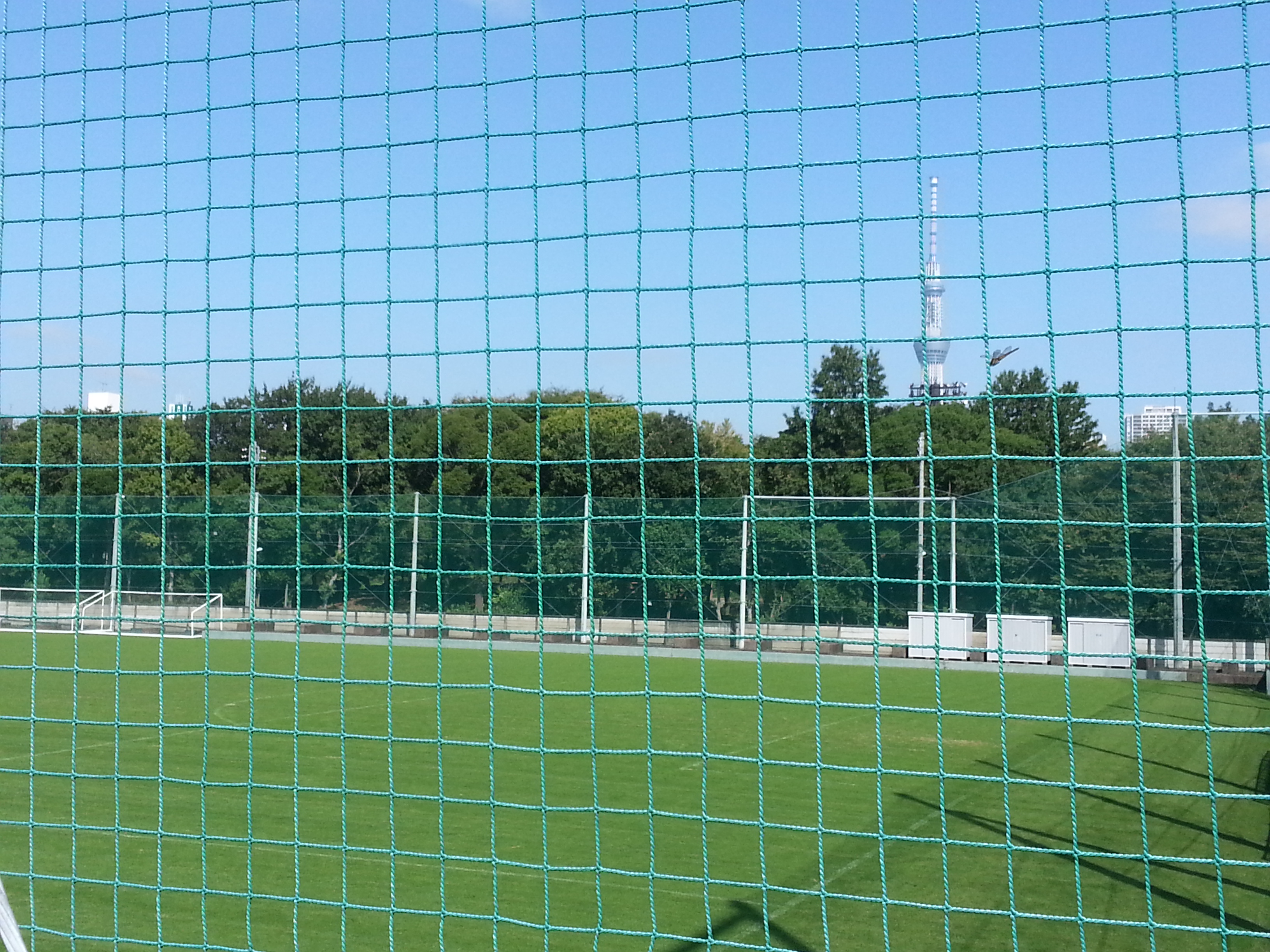東ガスのサッカーグランド、向こうにスカイツリーが見えます