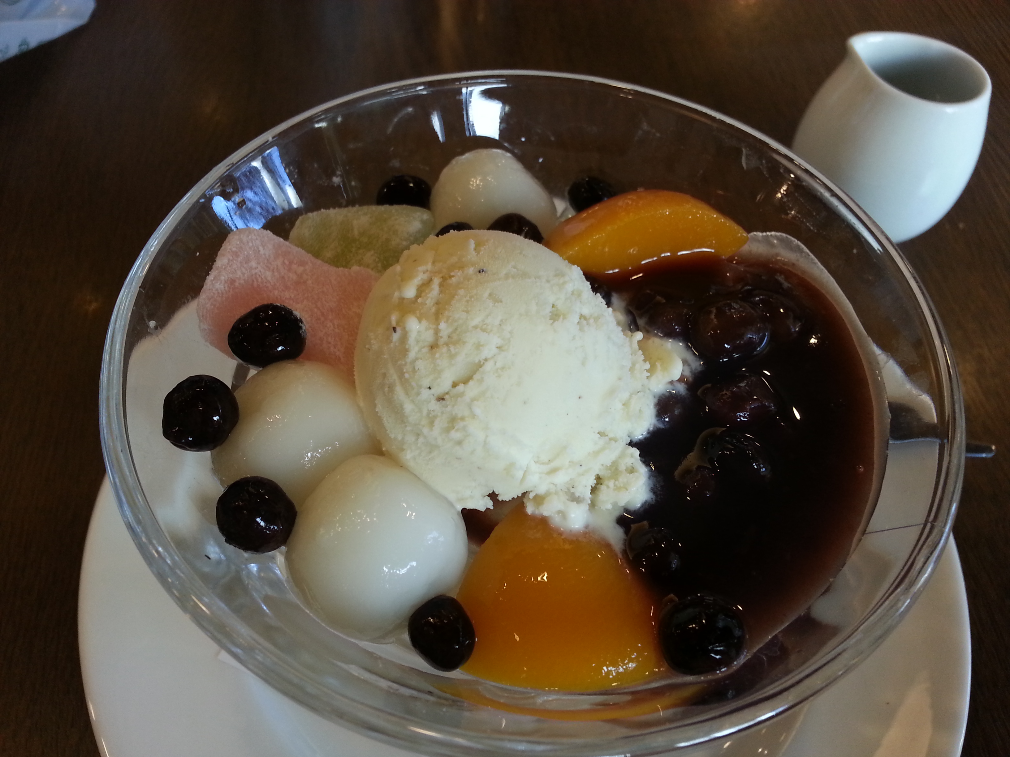 572円のファミレスのクリームあんみつとフルーツパーラのクリームみつまめ1500円