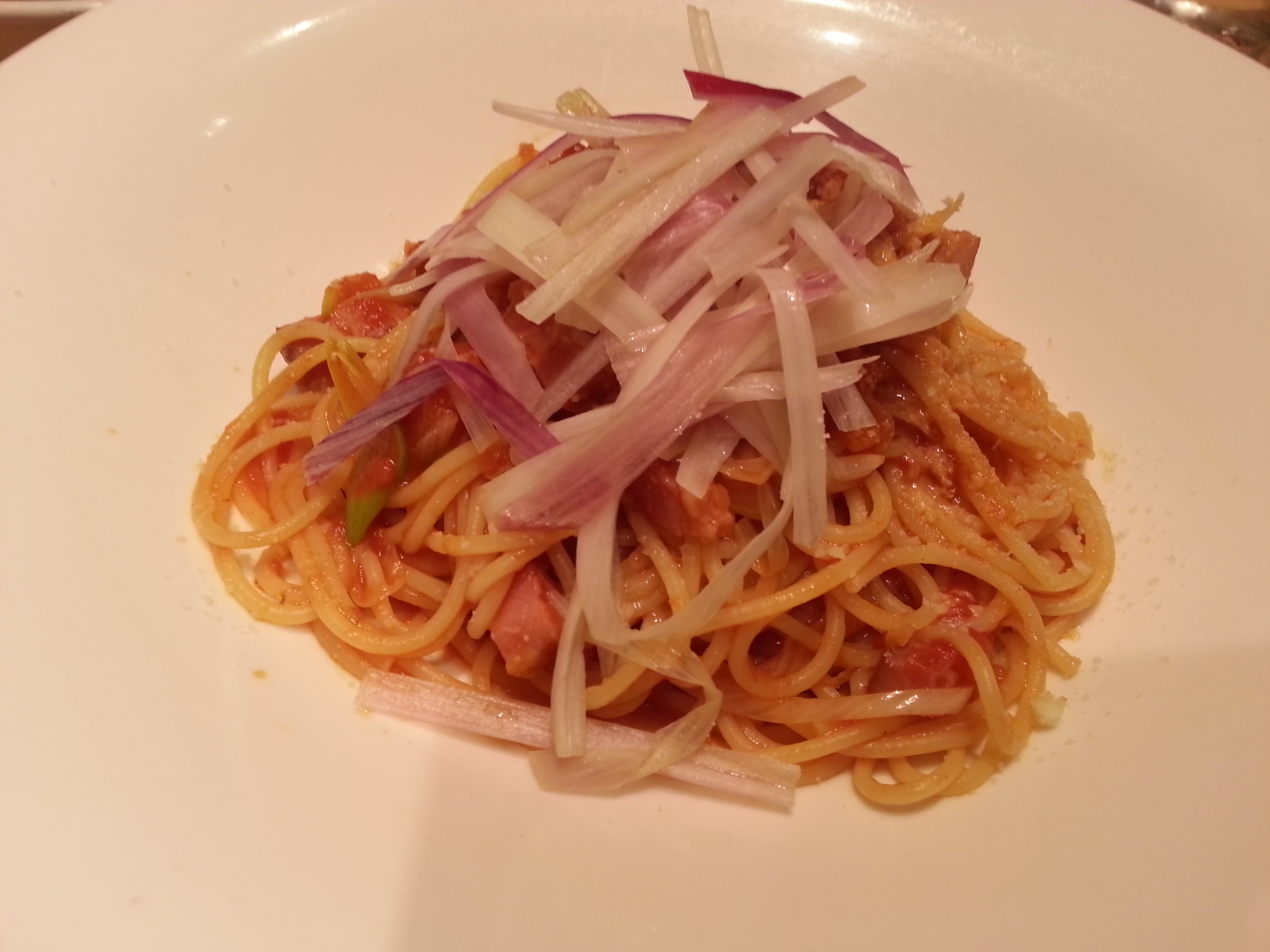 帰りに東京駅で、奥田シェフのプロデュースした「ゆでろう」スパゲティを。