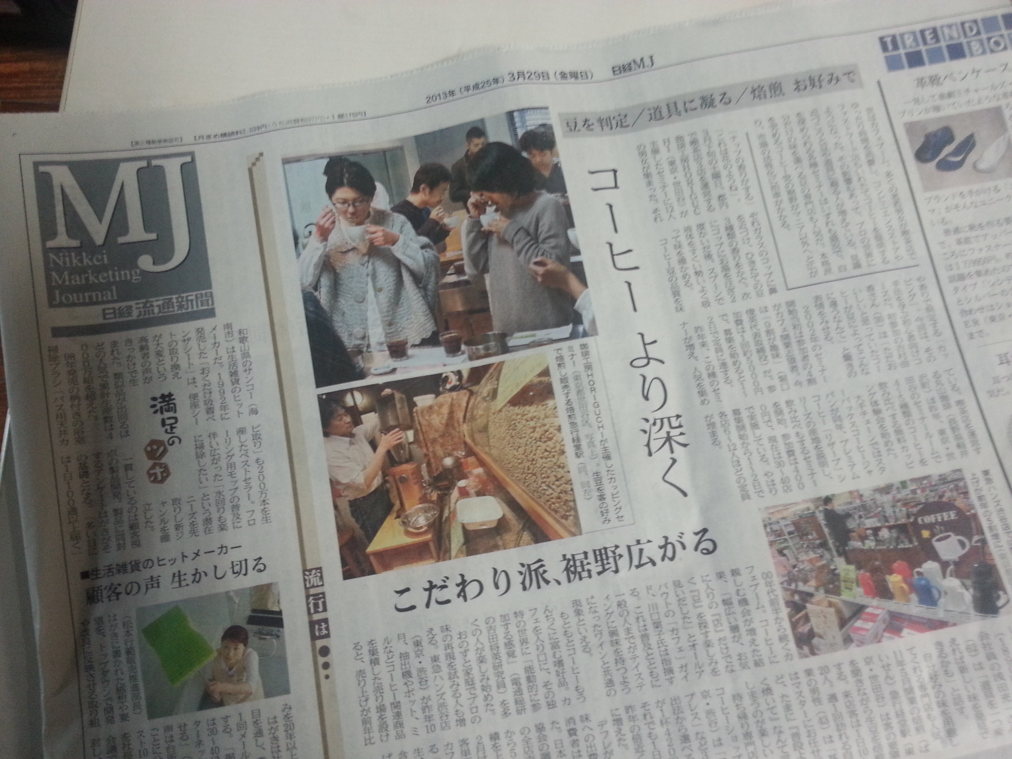 パパ日記 MJ(日経流通新聞) 3/29日 2013.3.29 セミナー&テースティング会 堀口珈琲のカッピングセミナー 3/23日のセミナー取材記事です 堀口のセミナーは古い歴史があります 予約がとりにくいと思いますがめげずにチャレンジしてください きっと多くのものを得て帰れると思います 5月セミナー日程は近々にご案内します カテゴリ内の一覧をみる